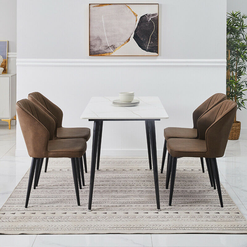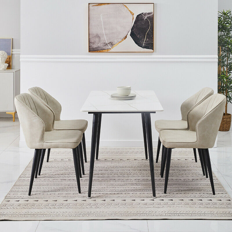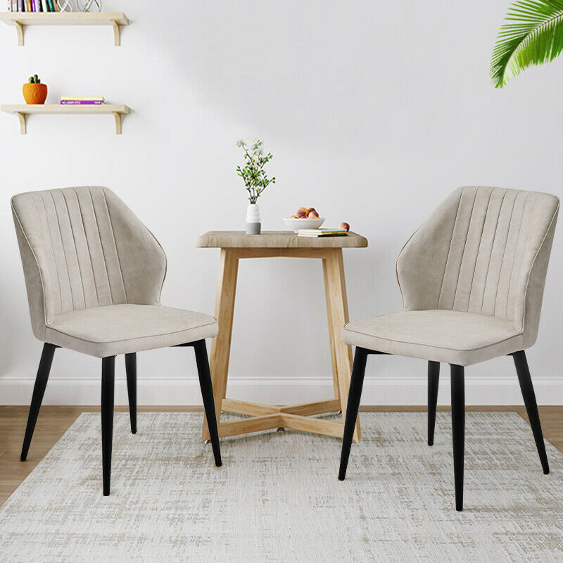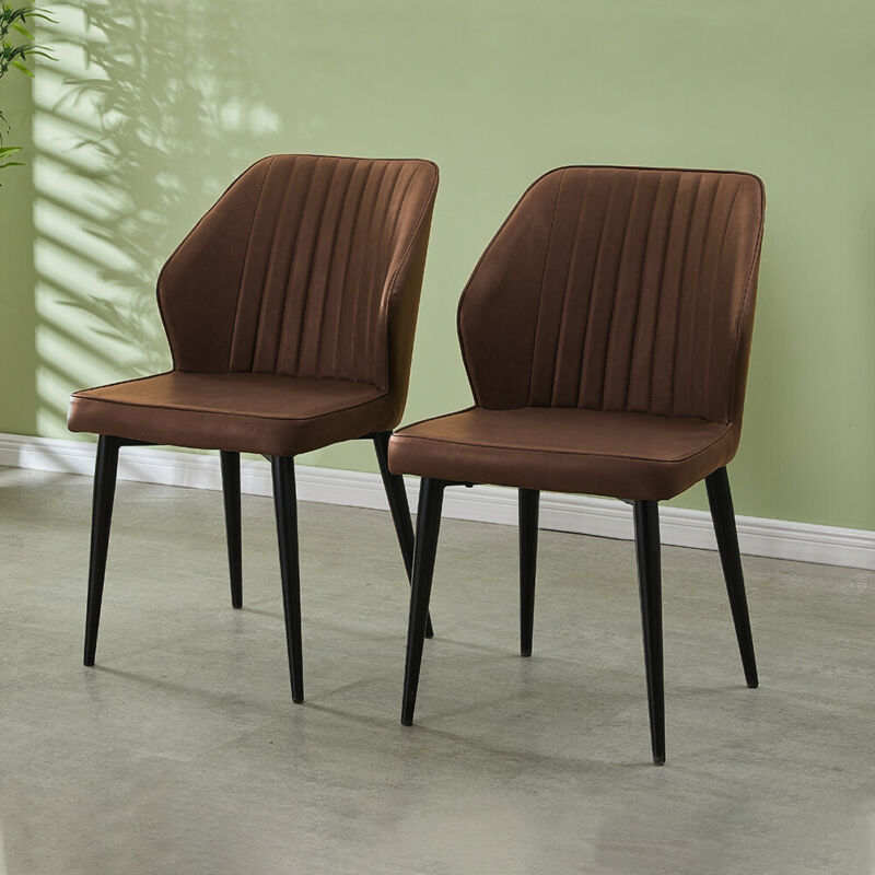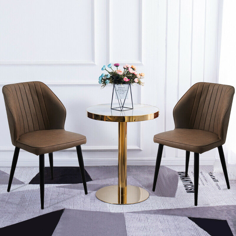 Set of 2 Faux Leather Dining Chairs PU Padded Metal Leg Restaurant Accent Chair