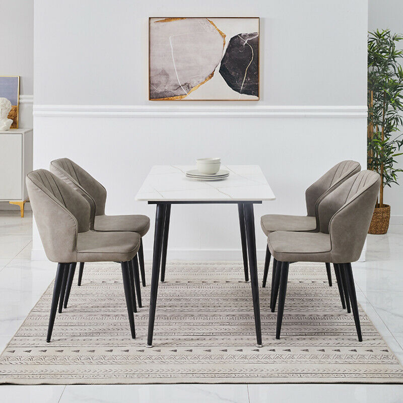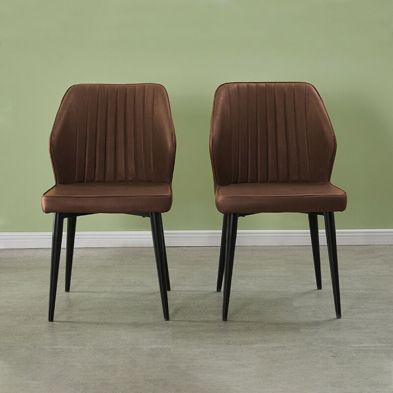 Set of 2 Faux Leather Dining Chairs PU Padded Metal Leg Restaurant Accent Chair