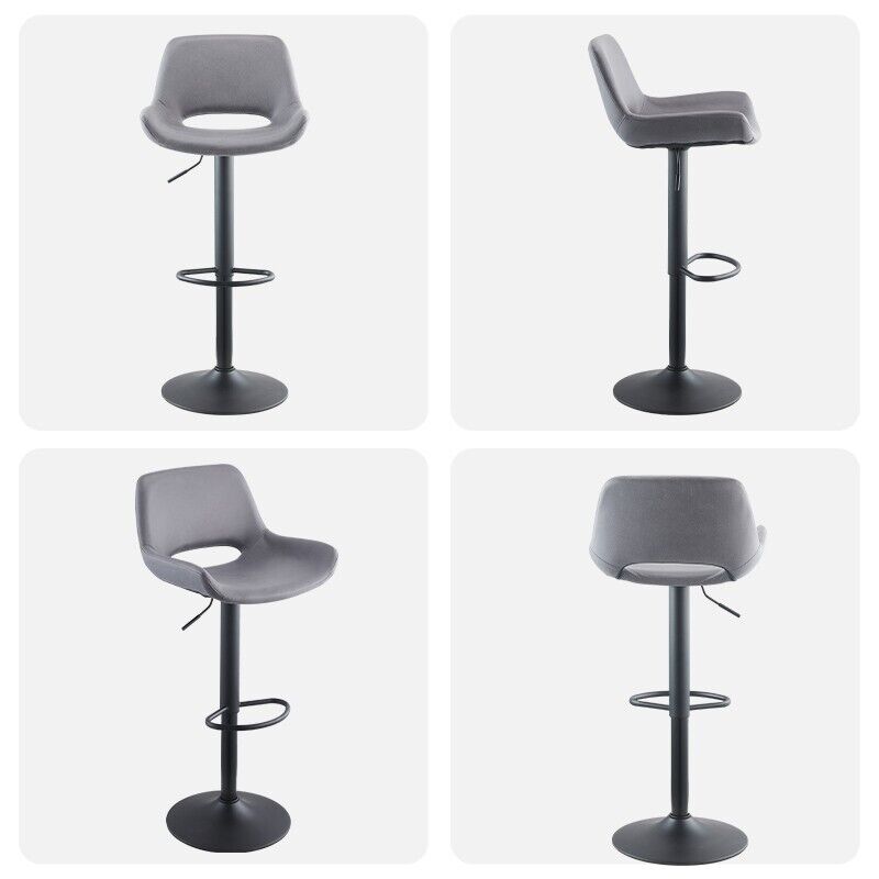 Set of 2 Grey Faux Leather Bar Stools Swivel Gas Lift Foot Rest Pub Chair Modern