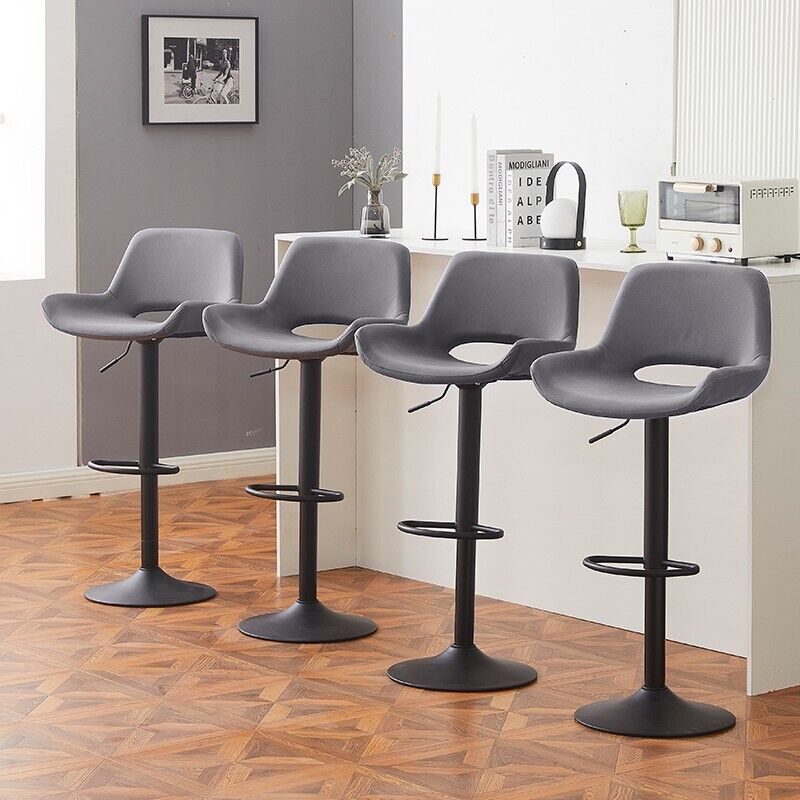 Set of 2 Grey Faux Leather Bar Stools Swivel Gas Lift Foot Rest Pub Chair Modern
