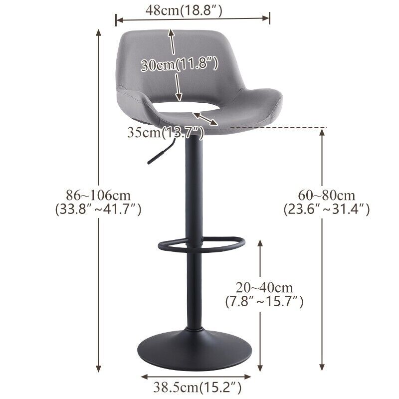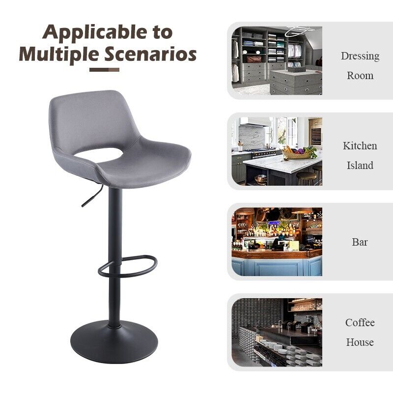 Set of 2 Grey Faux Leather Bar Stools Swivel Gas Lift Foot Rest Pub Chair Modern