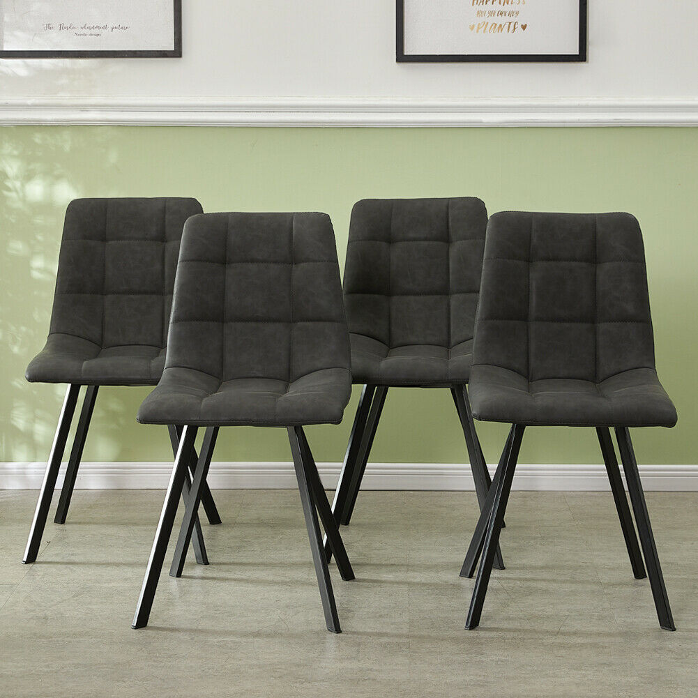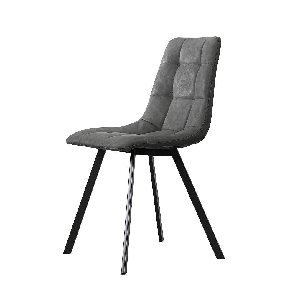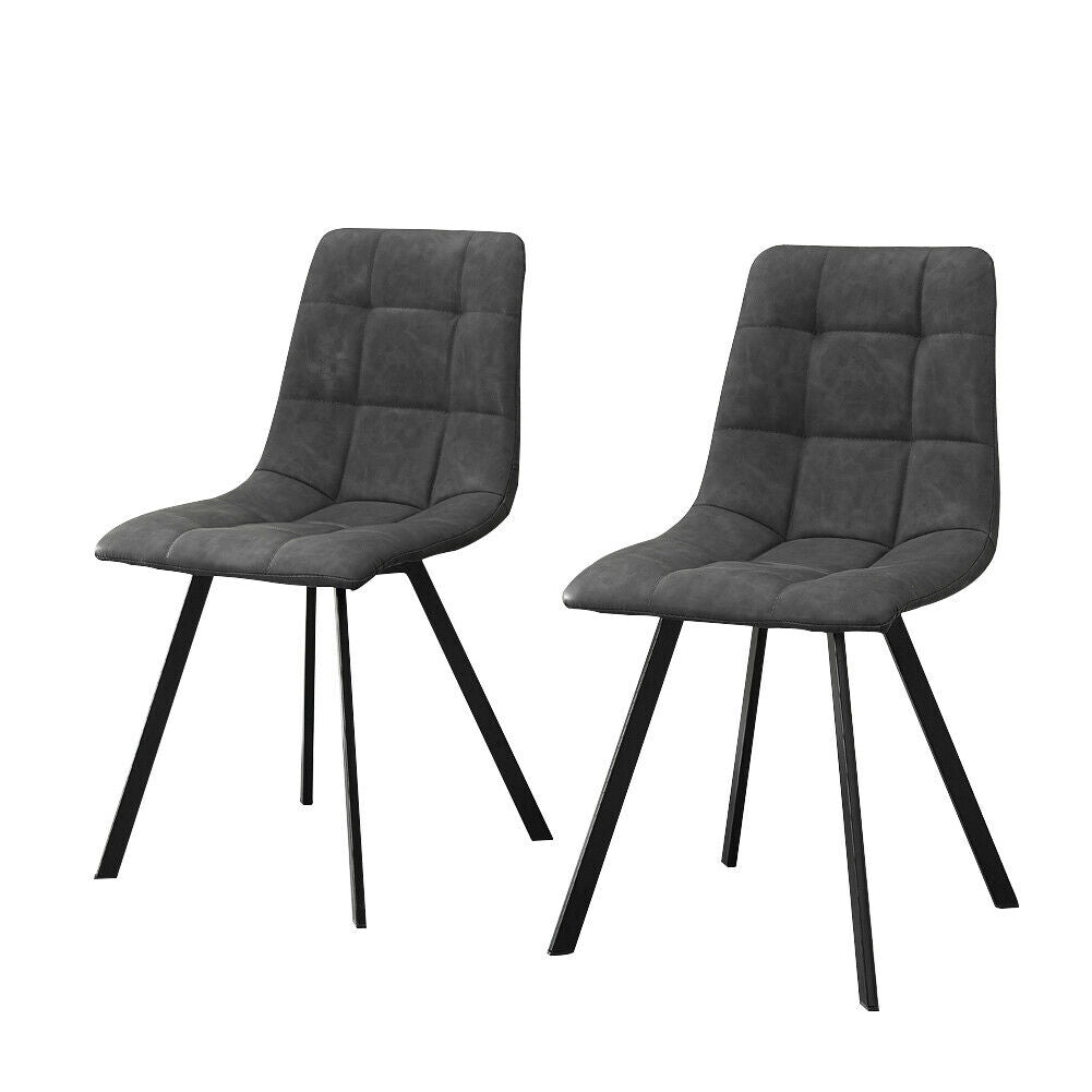 Set of 2 Grey Faux Leather Dining Chairs Padded Seat Metal Legs Restaurant