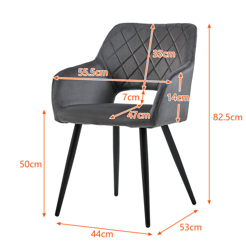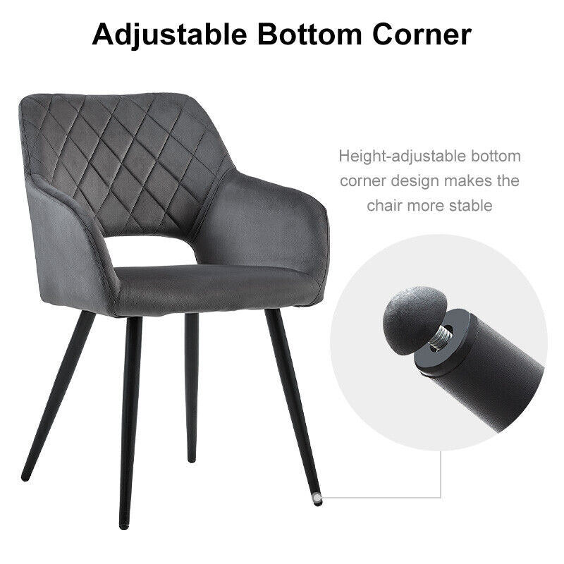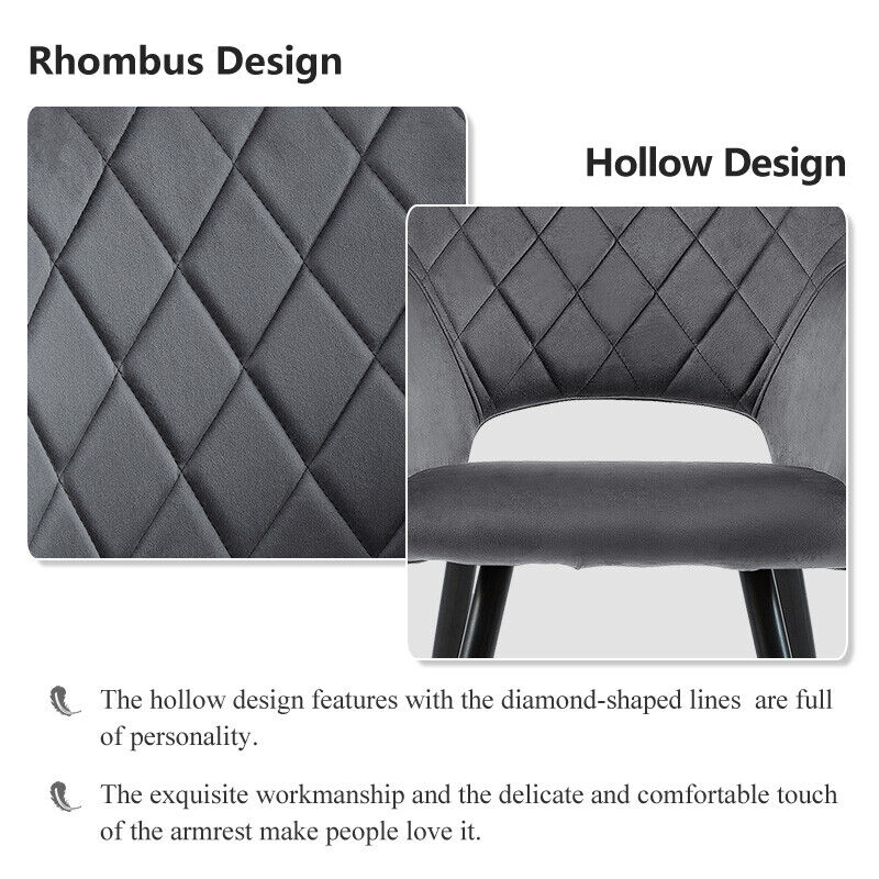 Set of 2 Grey Velvet Dining Chair with Diamond Seat & Metal Legs Dining Room