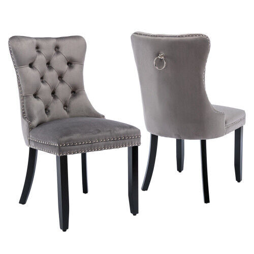 Set of 2 Grey Velvet Dining Chairs Dining Room Kitchen High Back Wooden Legs QY