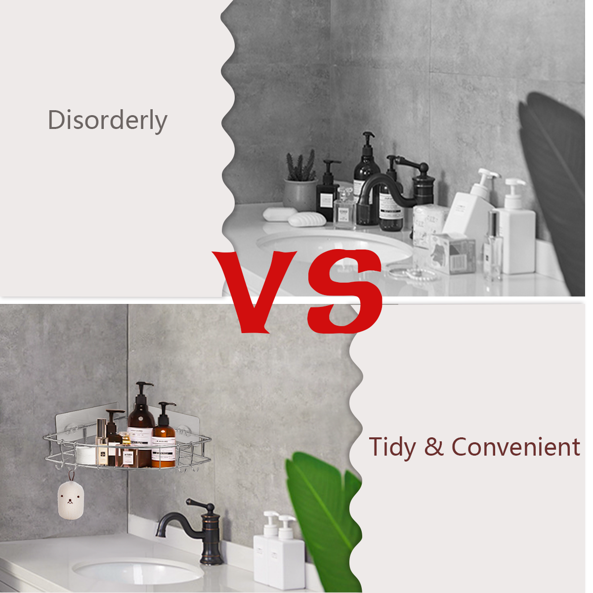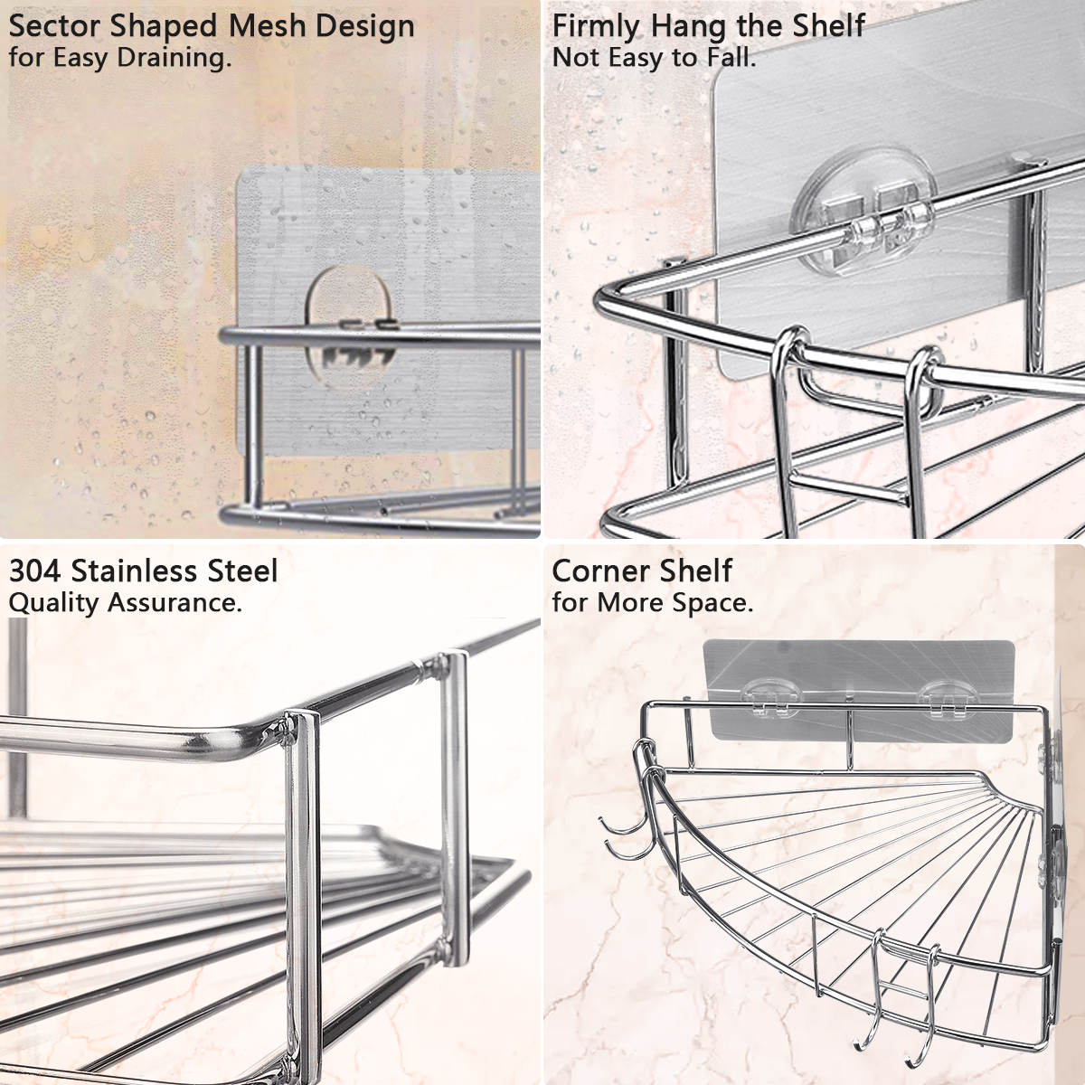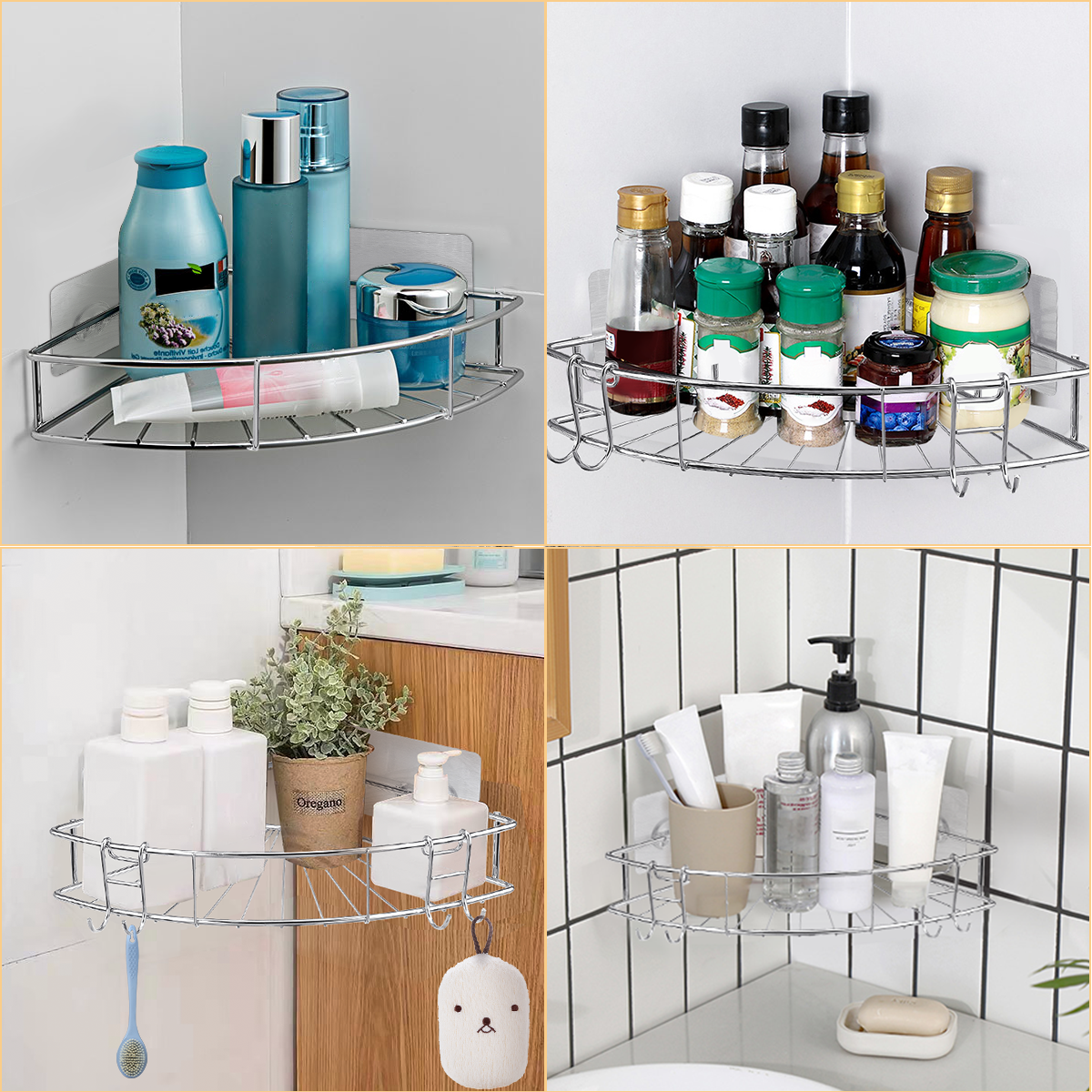 Set of 2 Heavy Duty Kitchen Bathroom Corner Shelf Shower Holder R