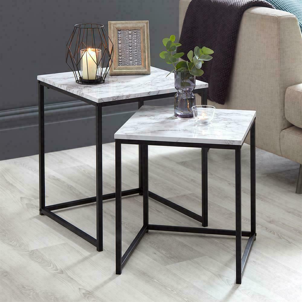 Set Of 2 Marble Effect Loft Range Nest Of Table Dinning Coffee Metal Frame Home