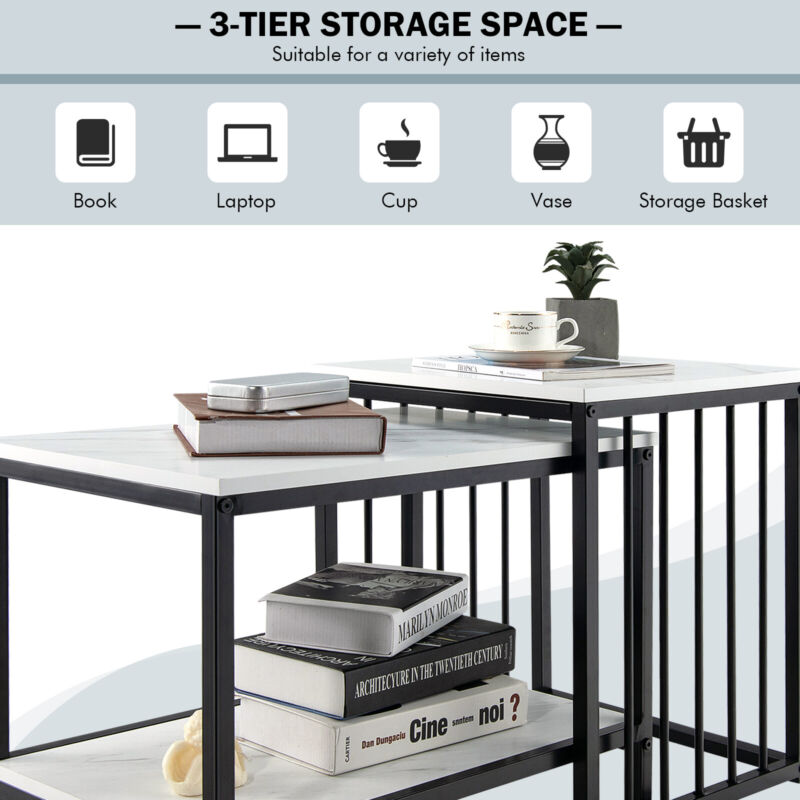 Set of 2 Modern Coffee Nesting Table Set 3 Tiers Storage Side Table Living Room