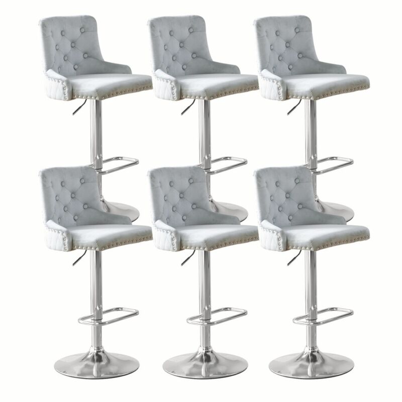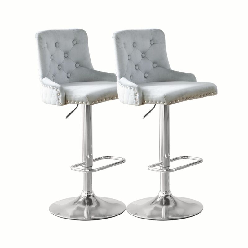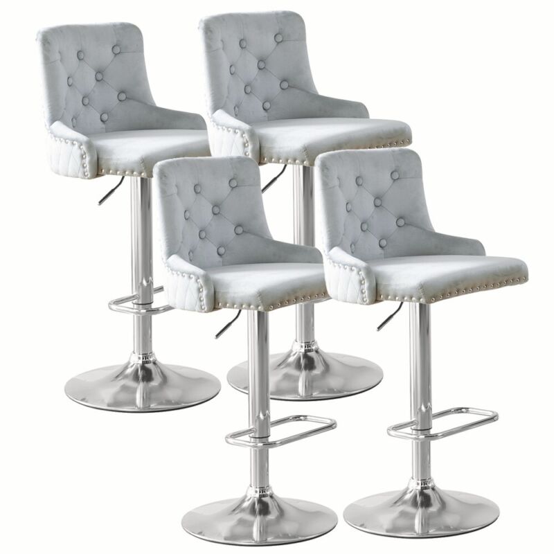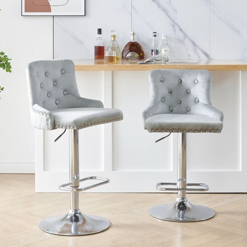 Set of 2 Modern Velvet Bar Stools Breakfast Home Kitchen Chair Bar Bistro Grey