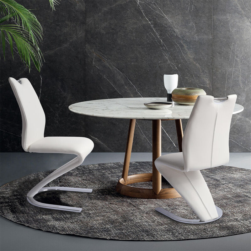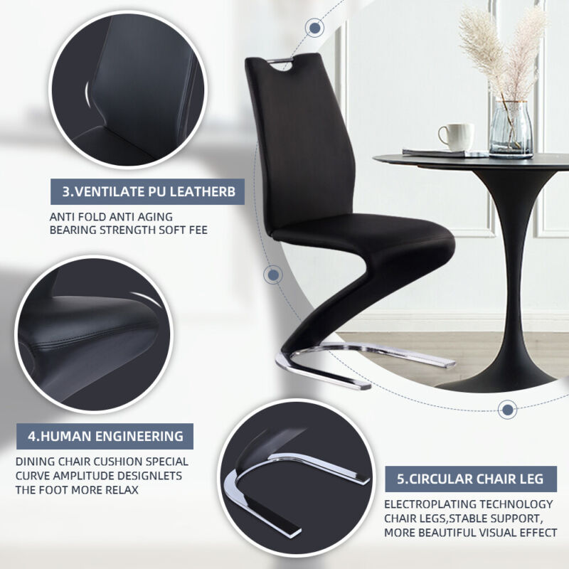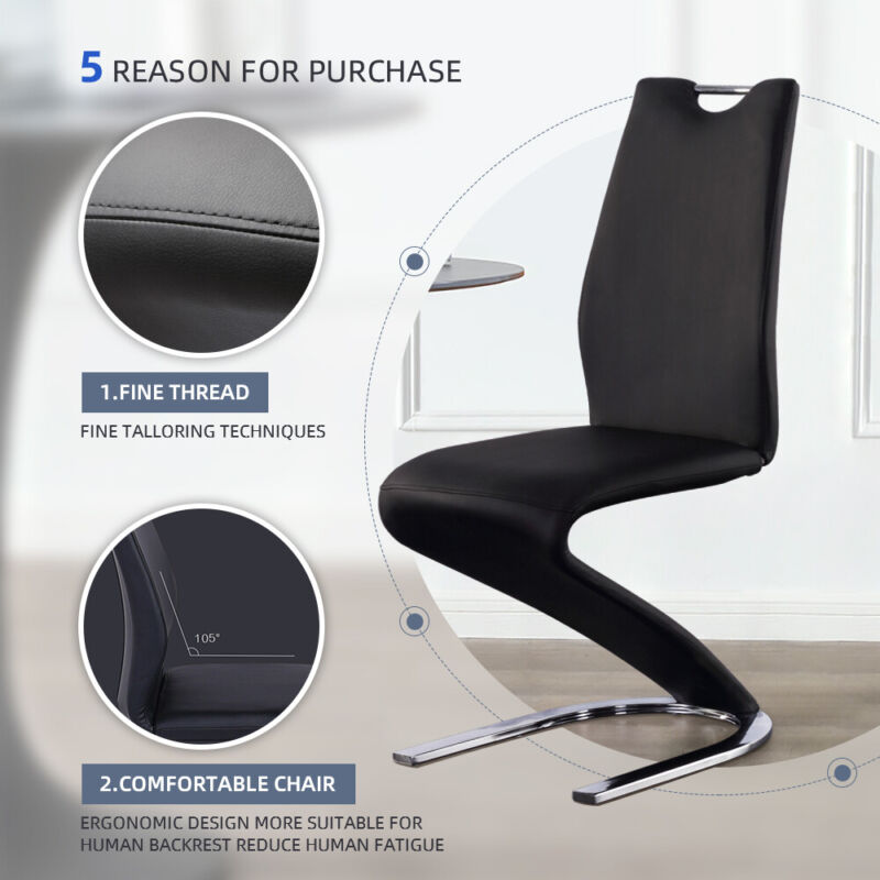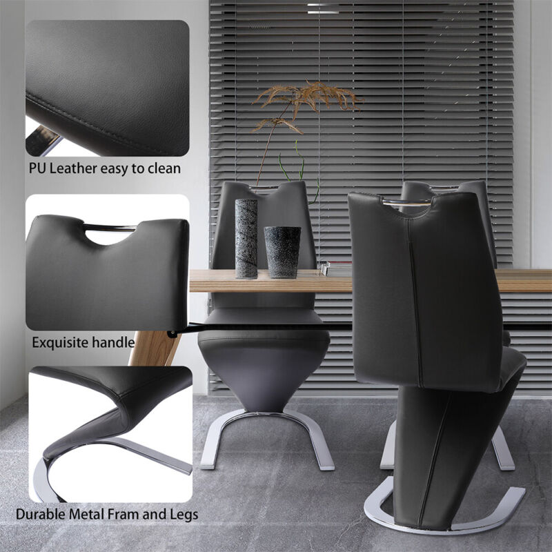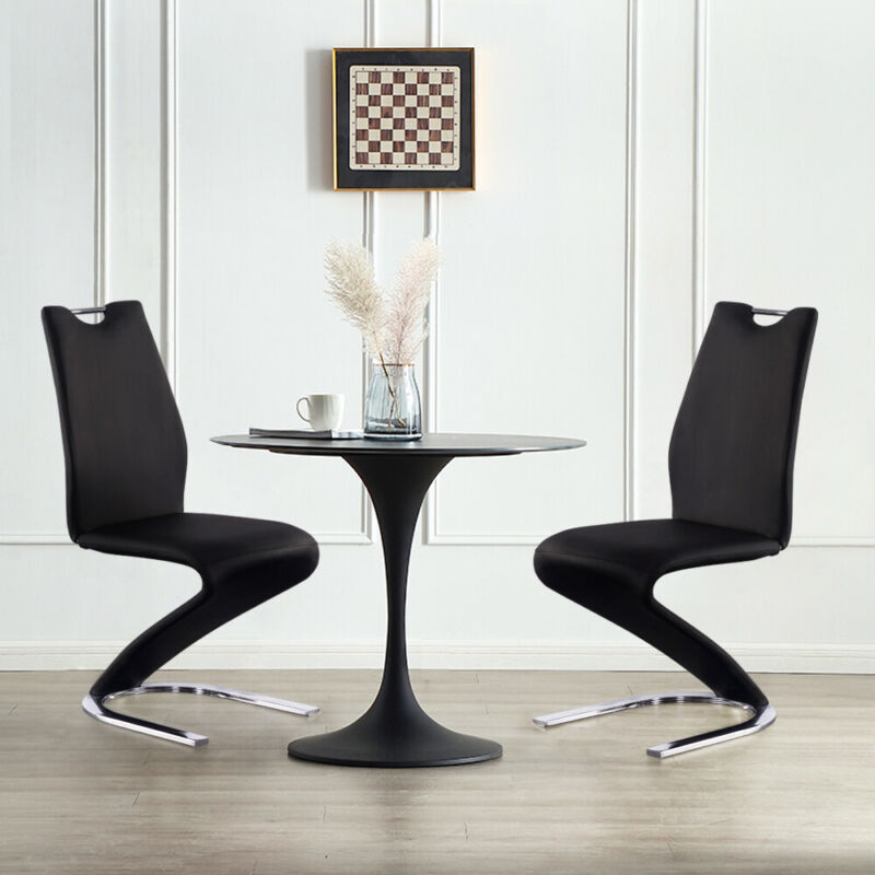 Set of 2 PU Leather Armless Chairs for Dining Kitchen Room High Back Steel Leg
