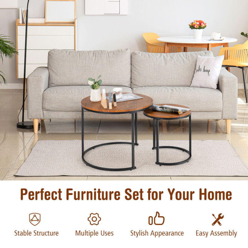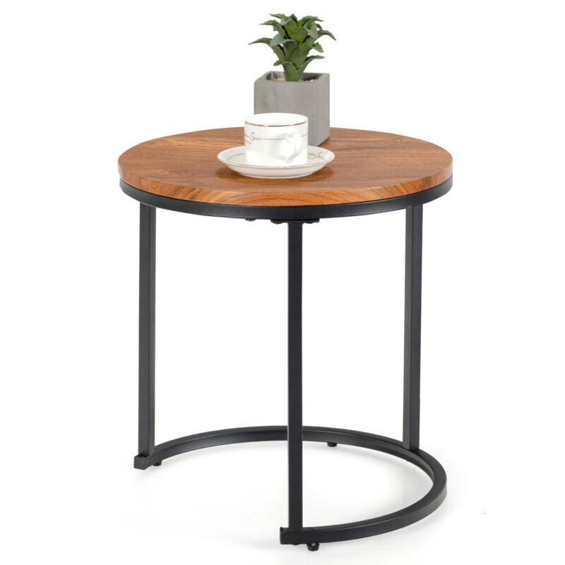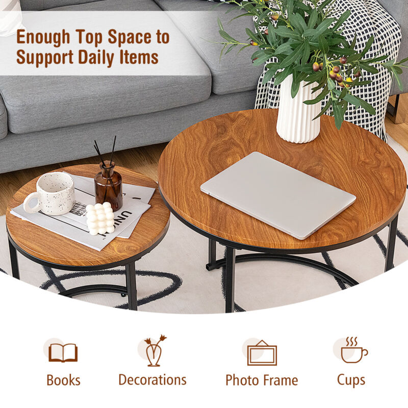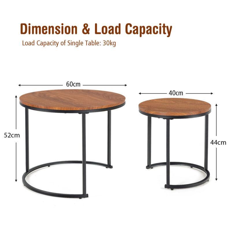 Set of 2 Round Nesting Coffee Table Compact Stacking Side Tables Space-saving