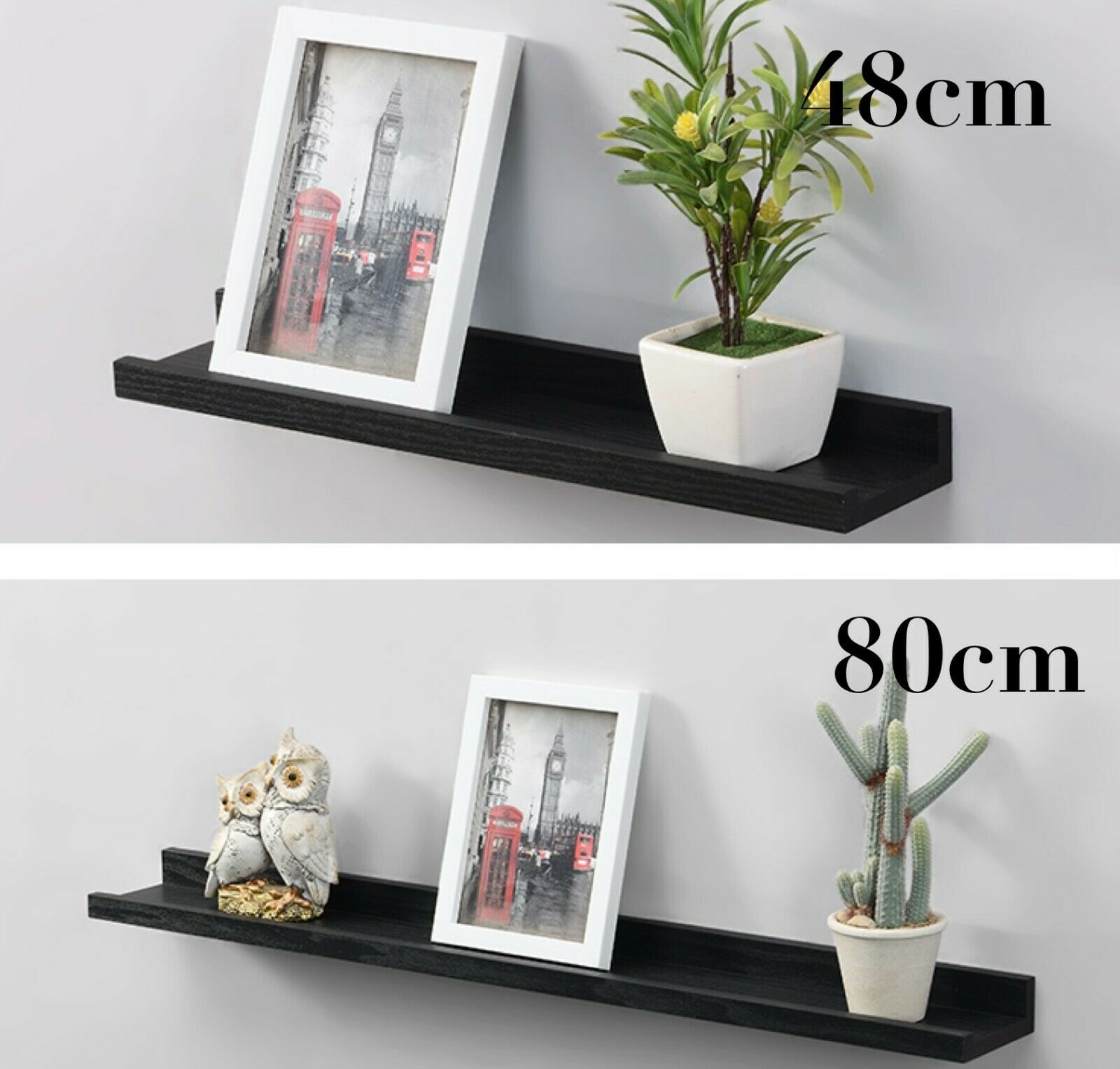 Set of 2 Shelf 48cm/80cmWide Photo Wall Mounted Floating Shelves Decoration
