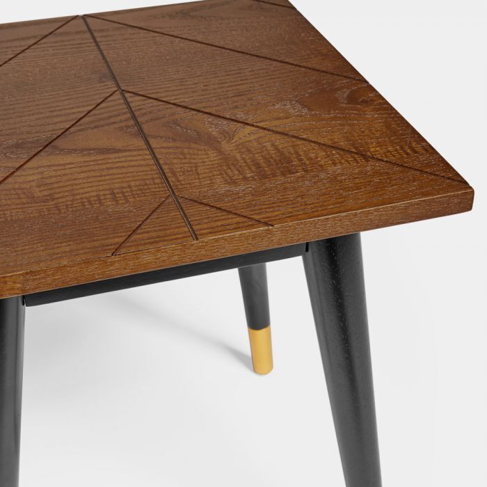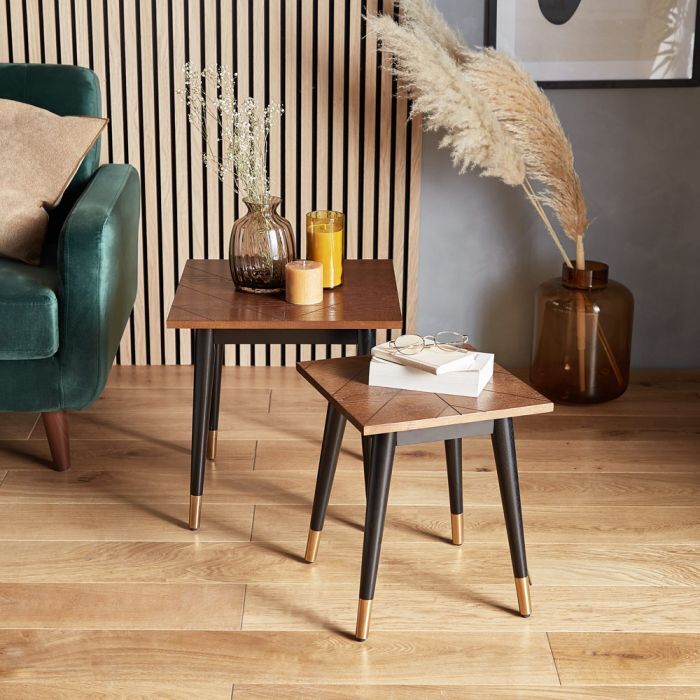 Set of 2 Tables Solid Dark Wood & Gold Chevron Design Tables Living Room