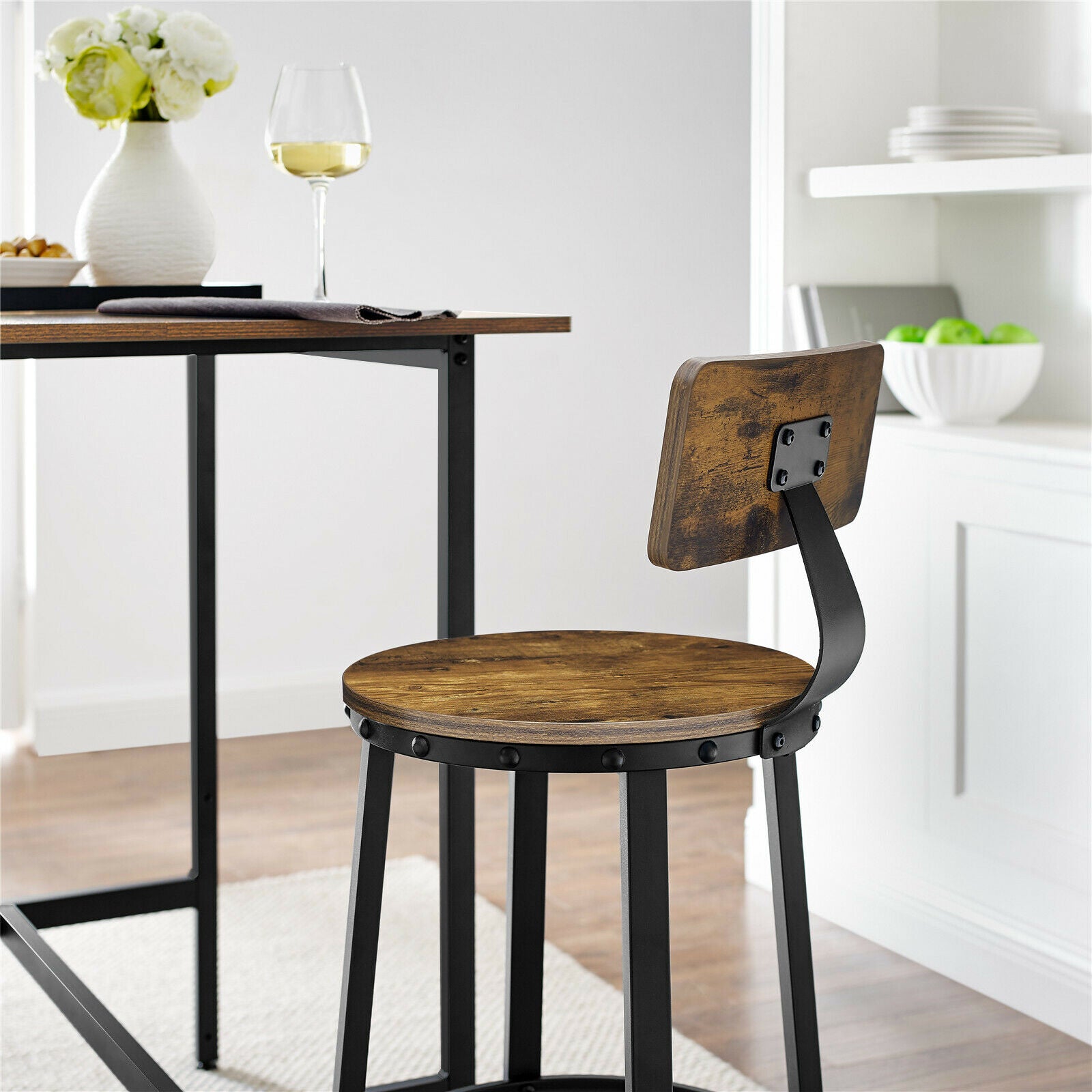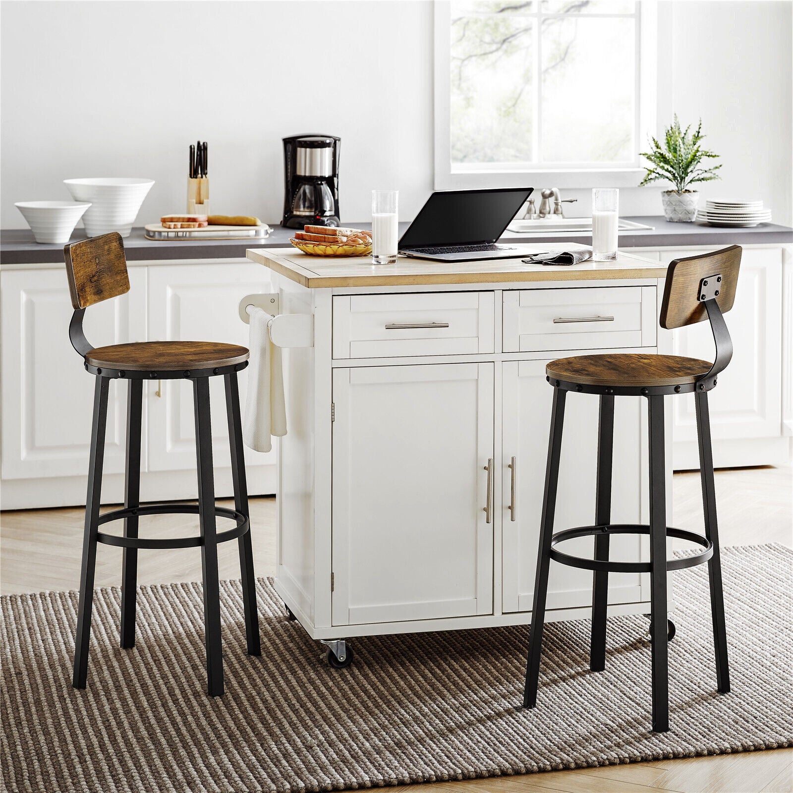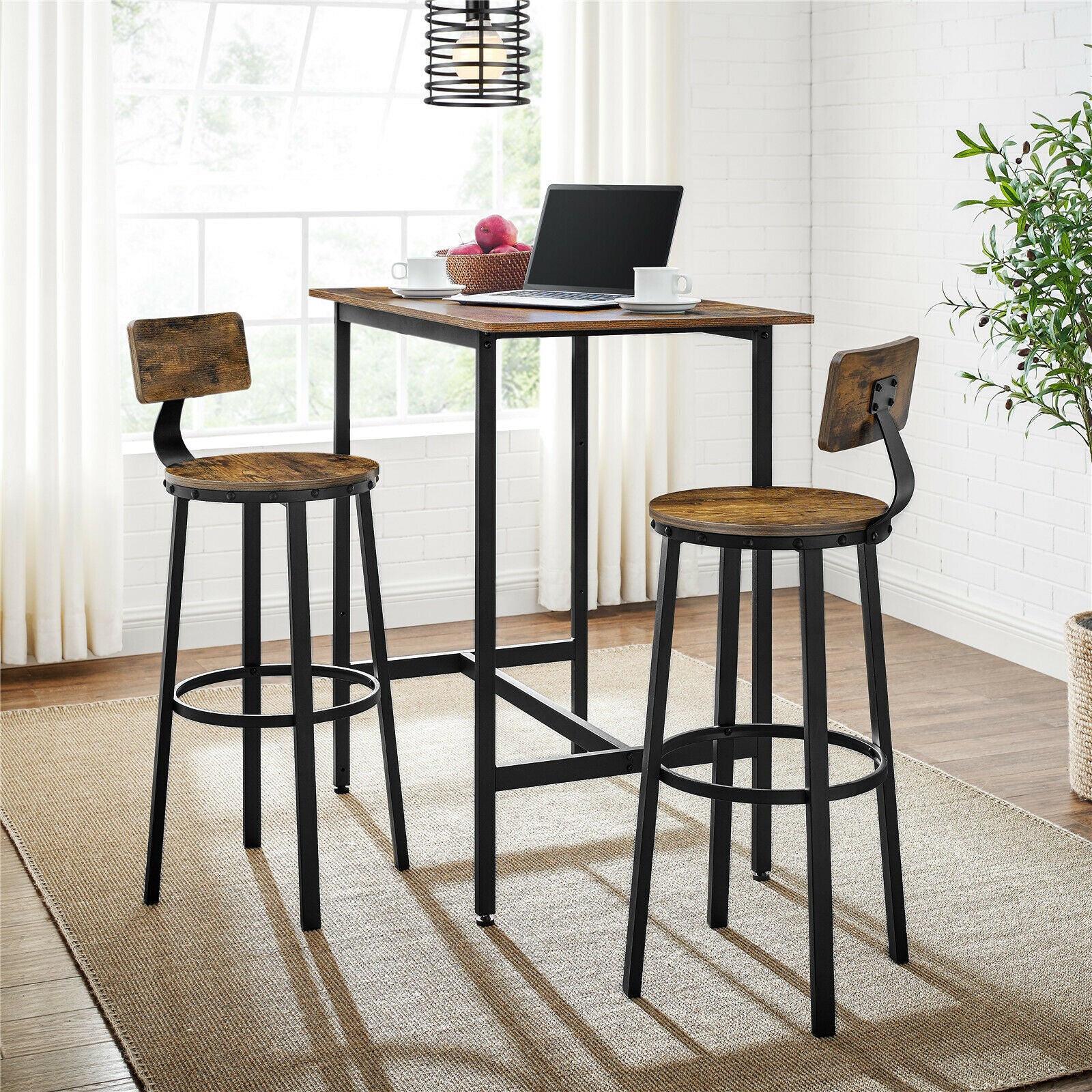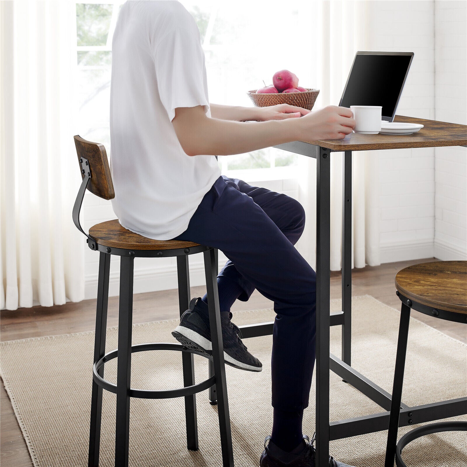 Set of 2 Tall Bar Stools, Bar Chairs with Backrest, Kitchen Stools, Breakfast