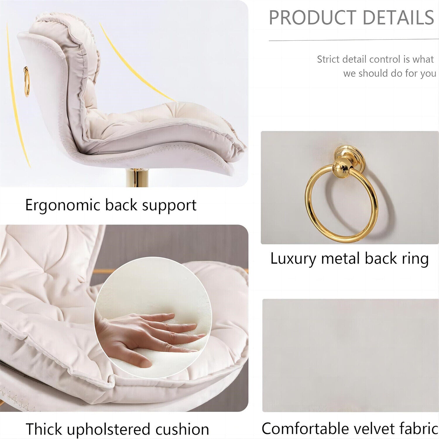 Features Swivel, Upholstered, Adjustable, With Backrest