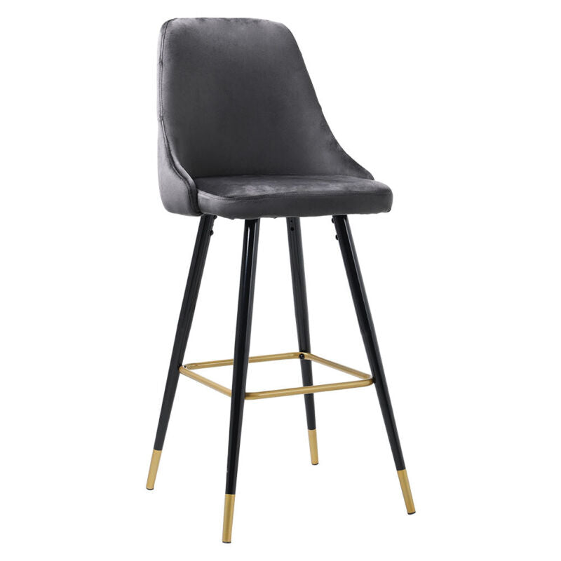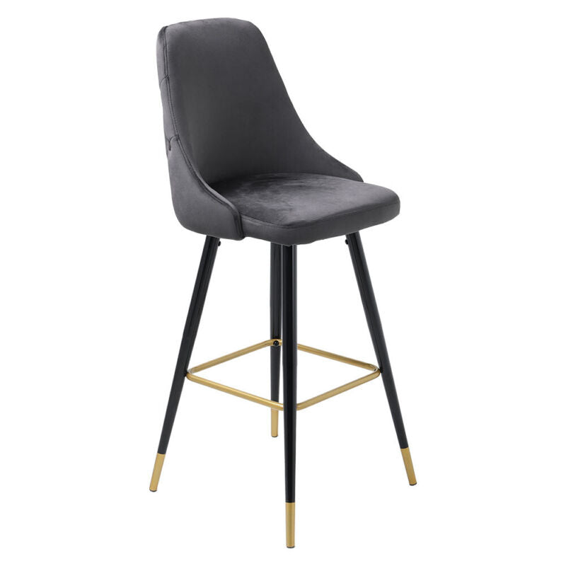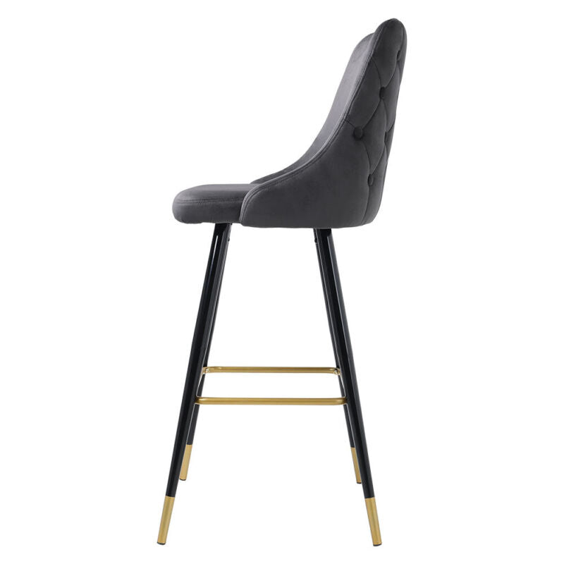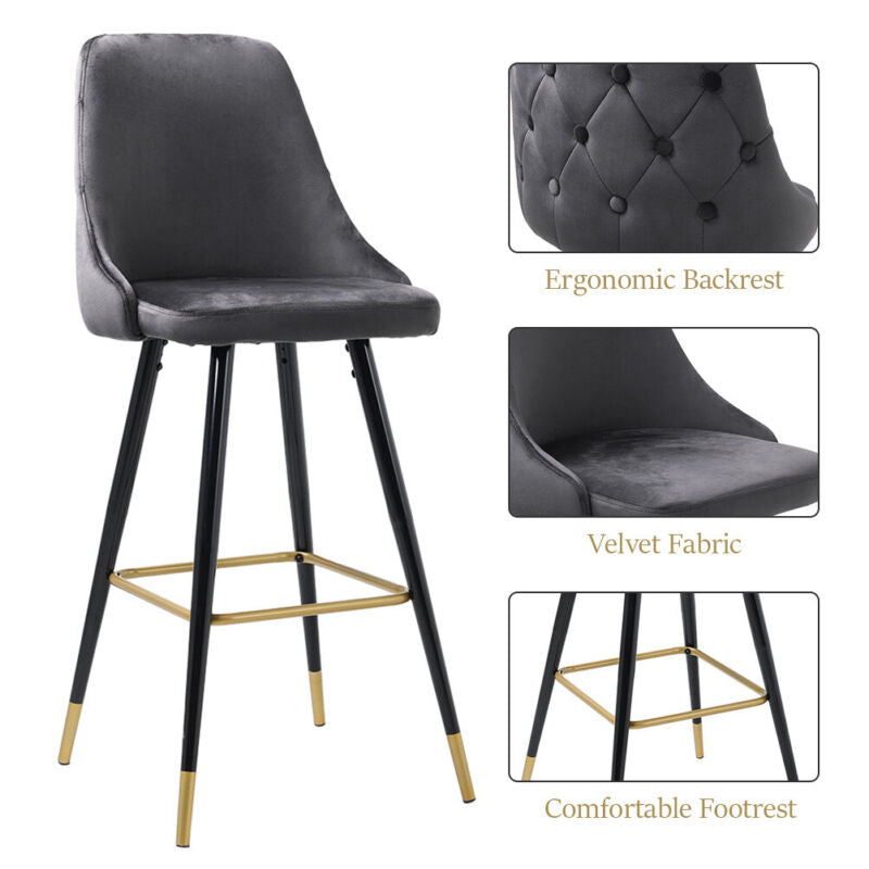 Set of 2 Velvet Bar Stools Metal Leg Padded Seat Breakfast Stools Kitchen Chair