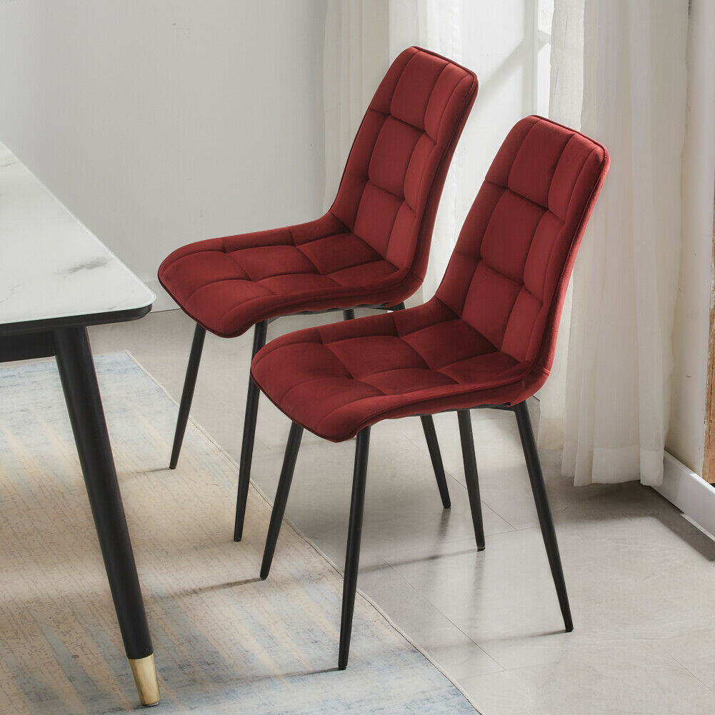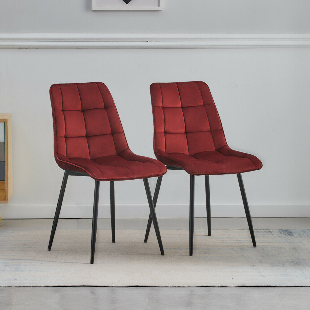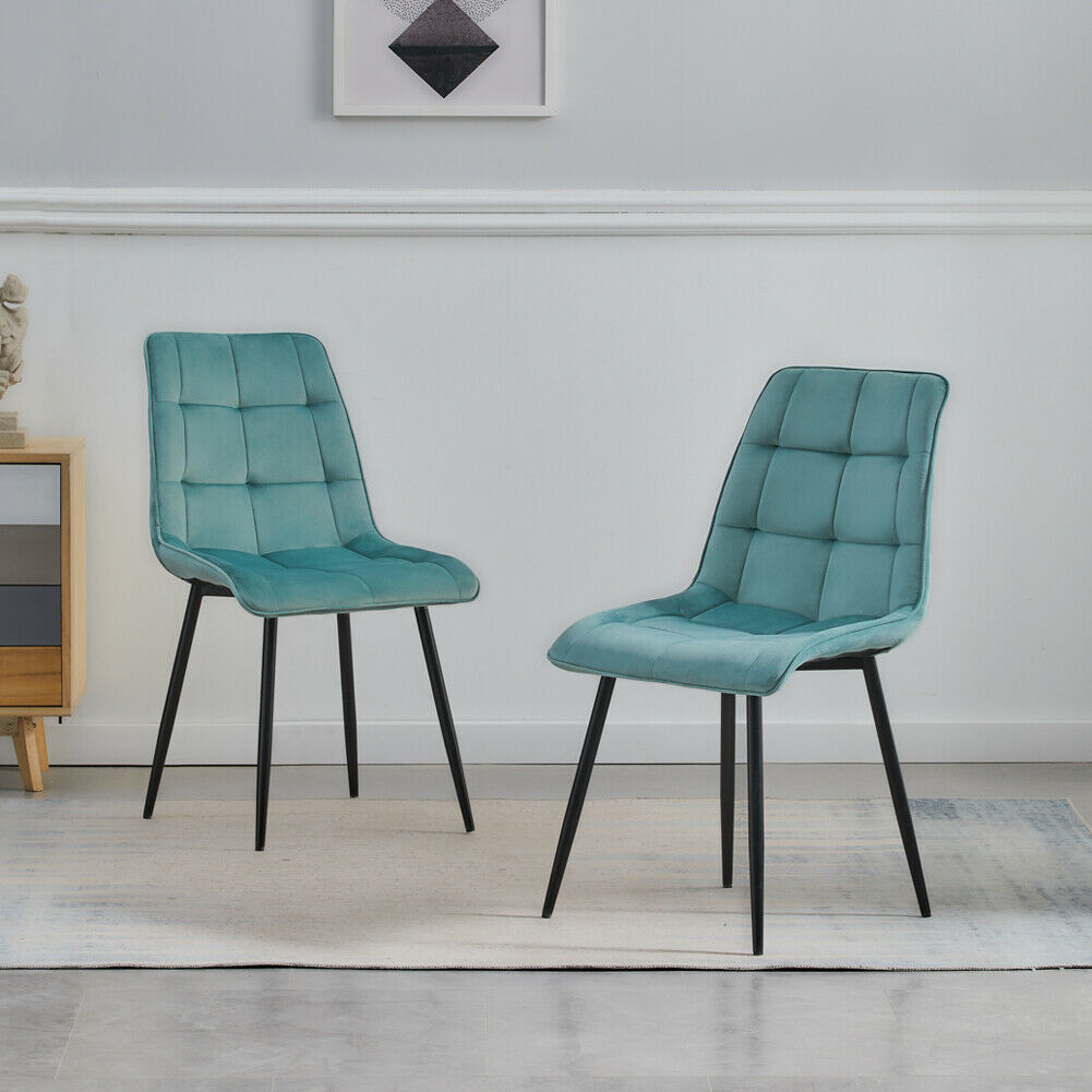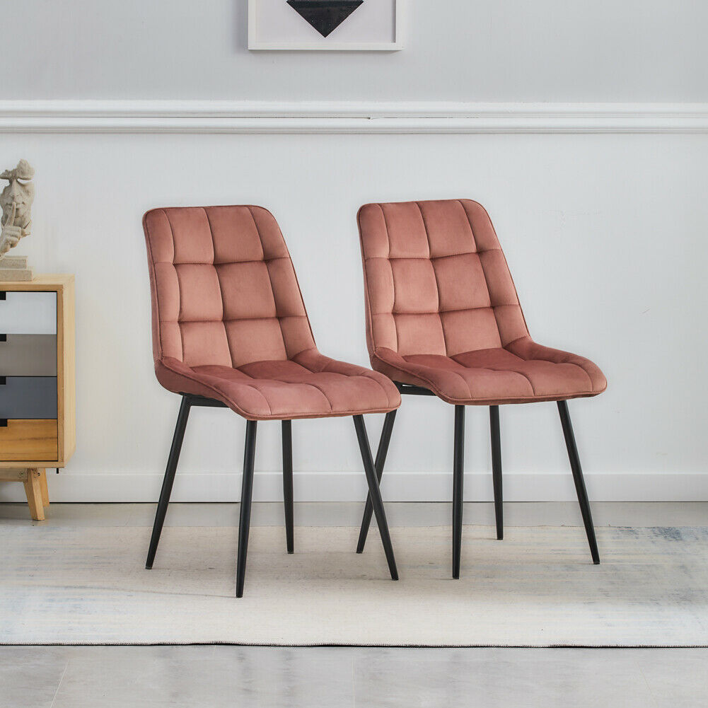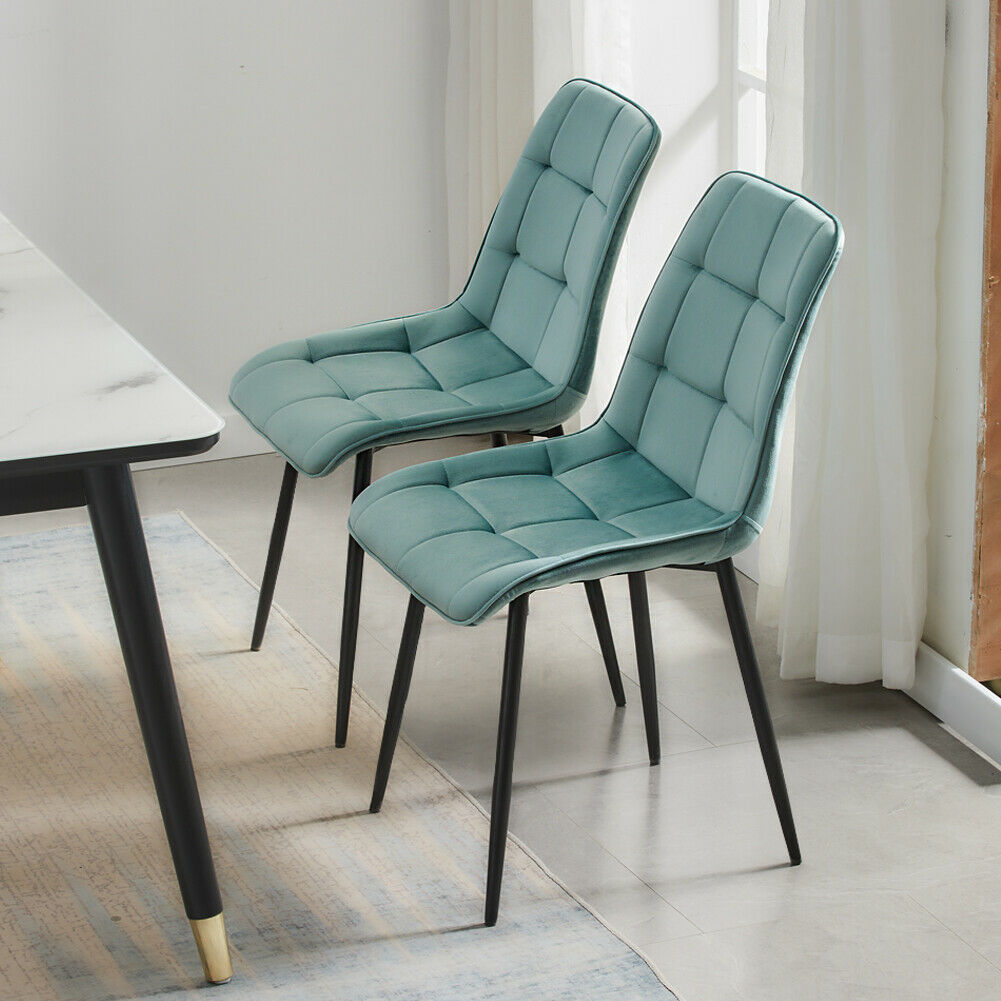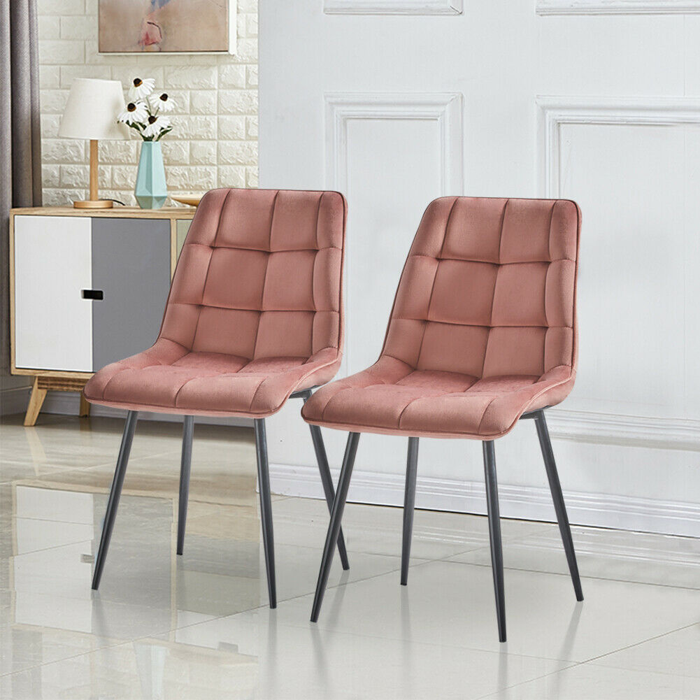 Set of 2 Velvet Dining Chairs Soft Padded Seat Metal Legs Modern Office Kitchen