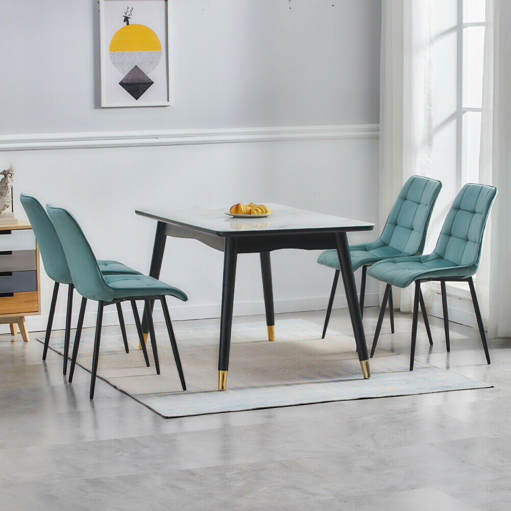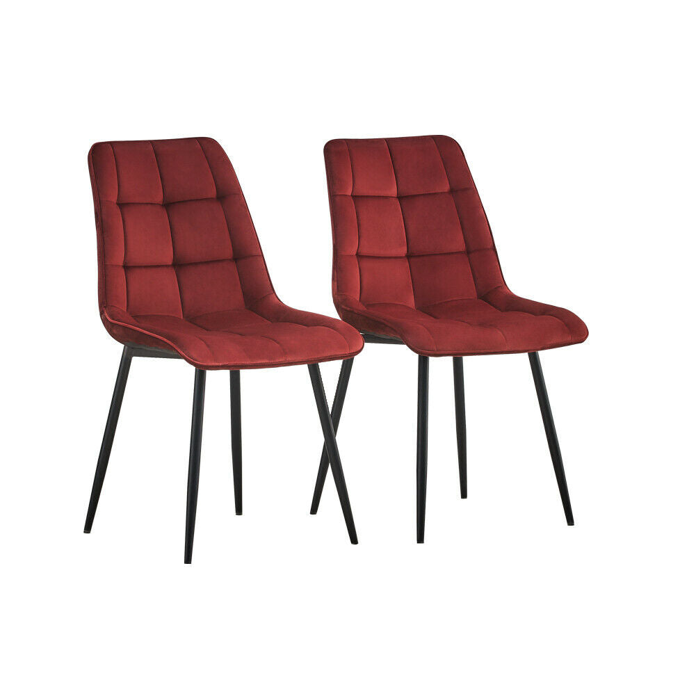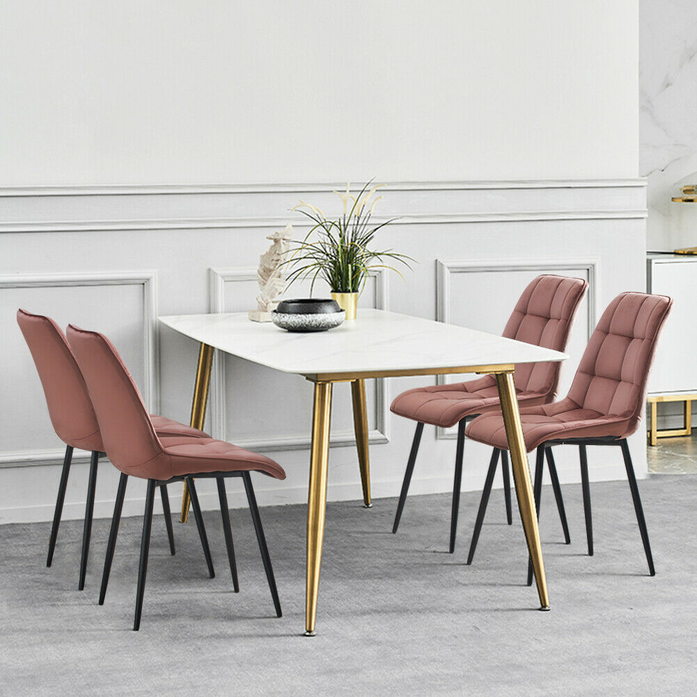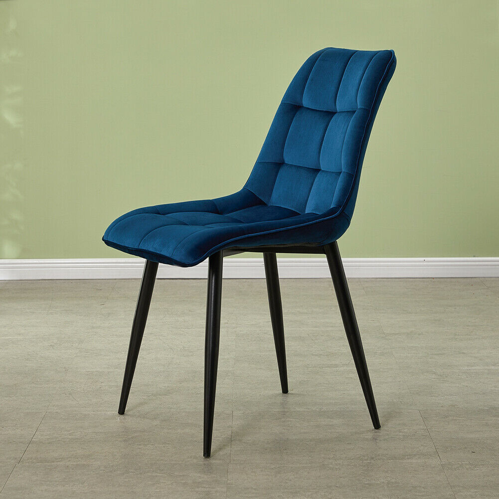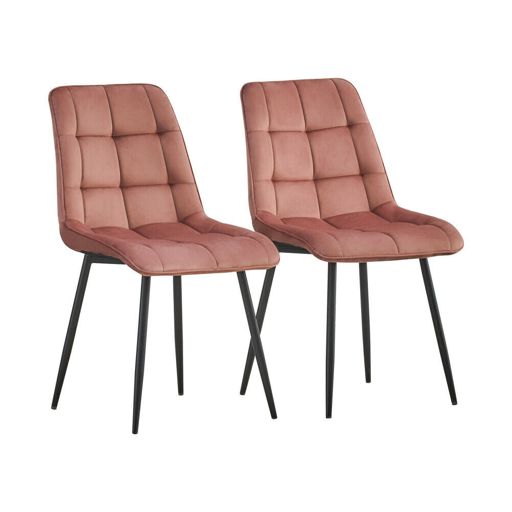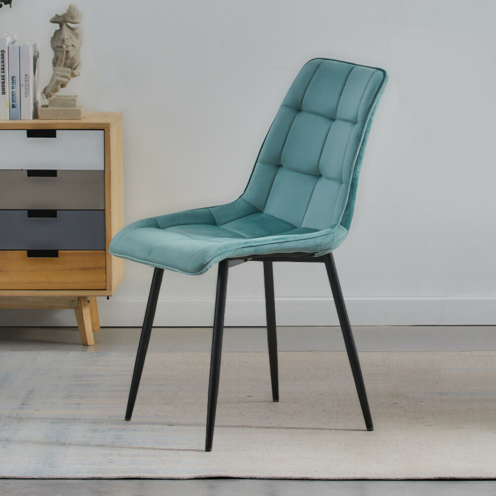 Set of 2 Velvet Dining Chairs Soft Padded Seat Metal Legs Modern Office Kitchen