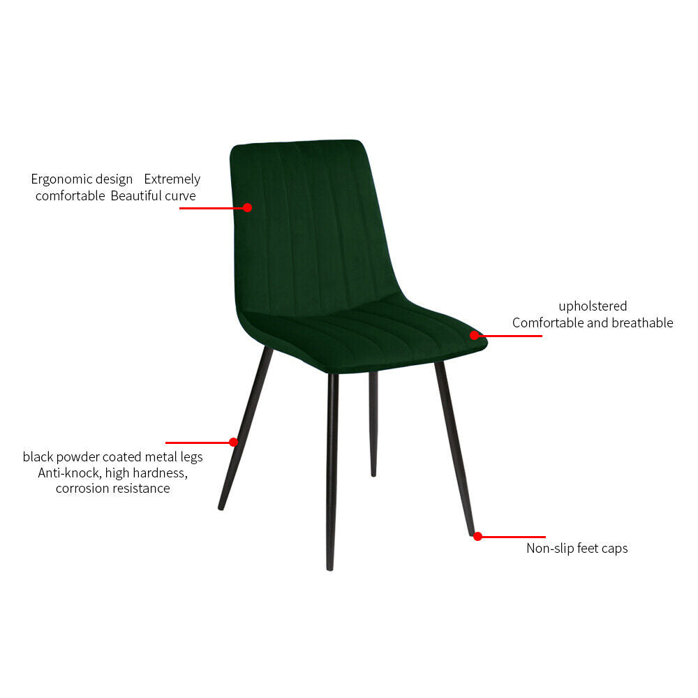 - Set of 2 Velvet Dining Chairs Soft Padded Seat Metal Legs Modern Office Kitchen