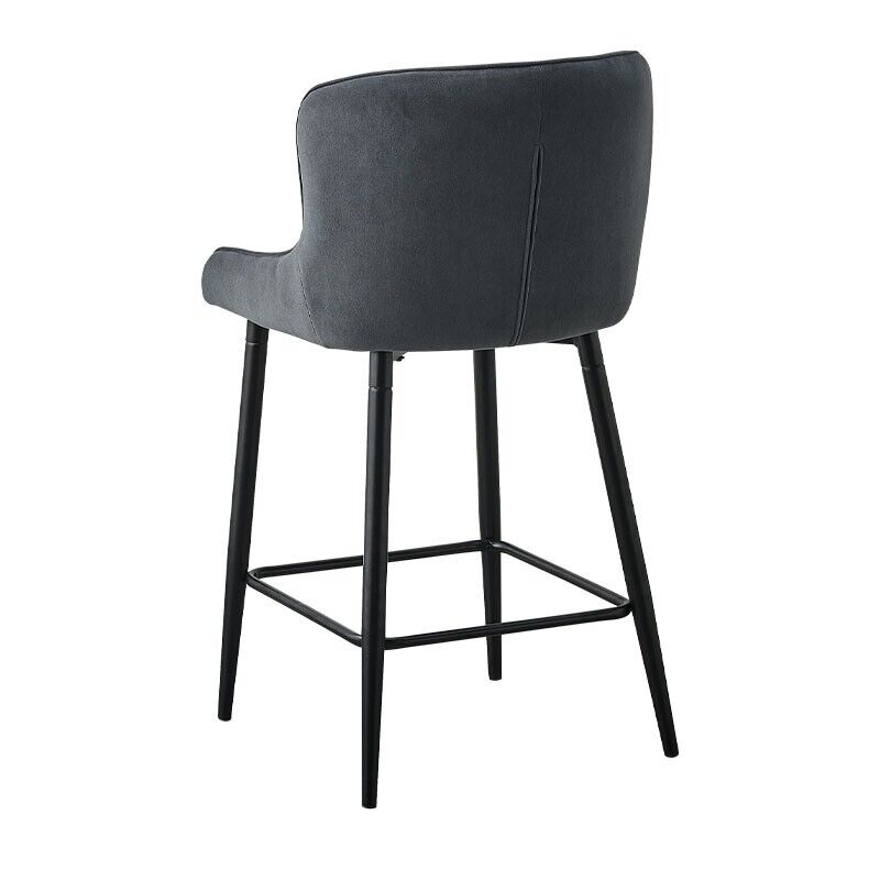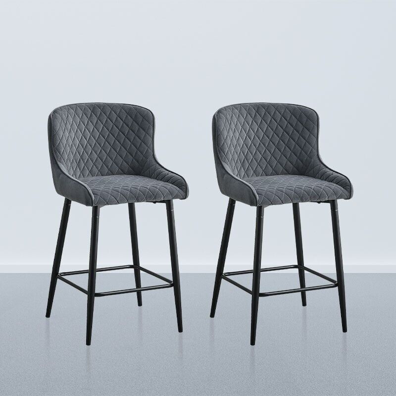 Set of 2 Velvet Fabric Bar Stools Counter Stool High Chairs Metal Legs Grey