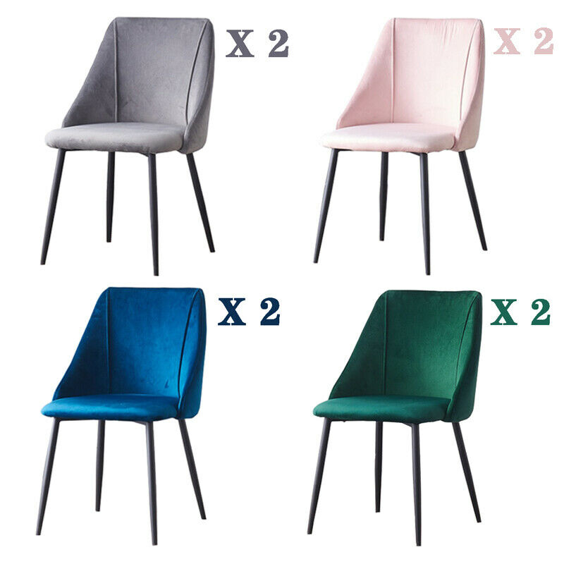 Set of 2 Velvet Padded Dining Chairs Living Room Chairs with Metal Legs Counter