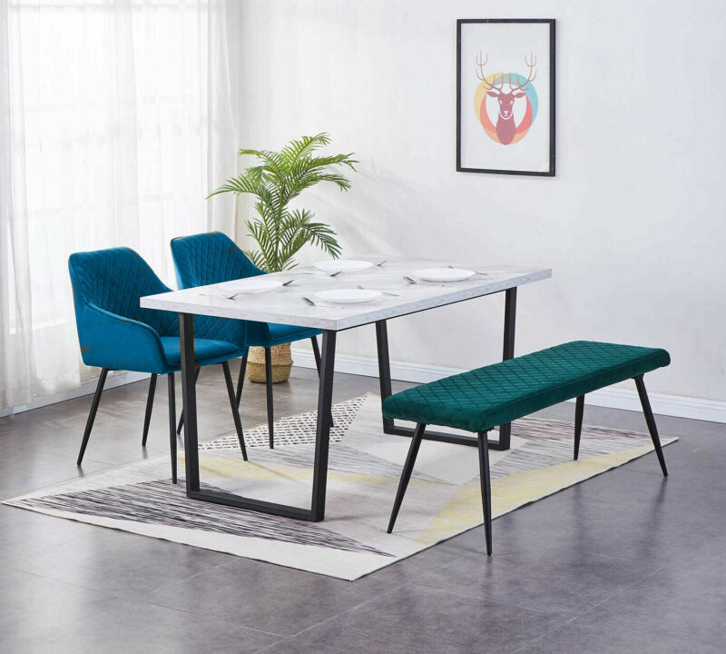 Set of 2 Velvet/PU Dining Chairs and Bench Chairs Padded Home kitchen Furniture