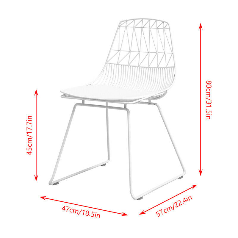 Set of 2 White Metal Wire Dining Style Chairs Modern Style Kitchen Living Room