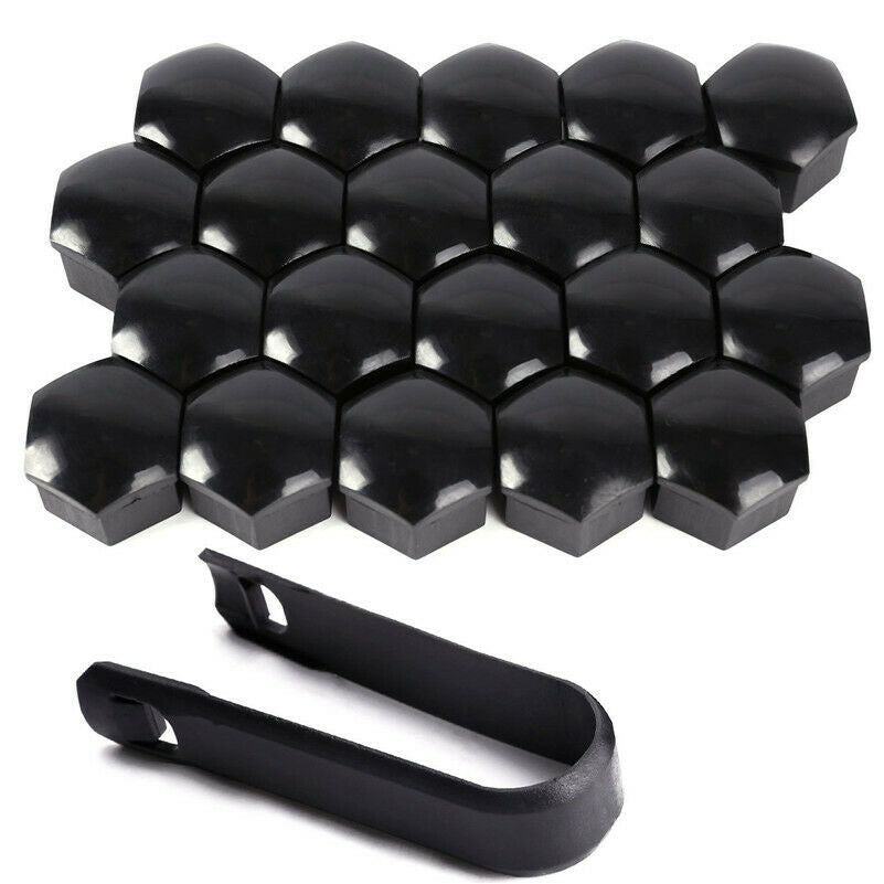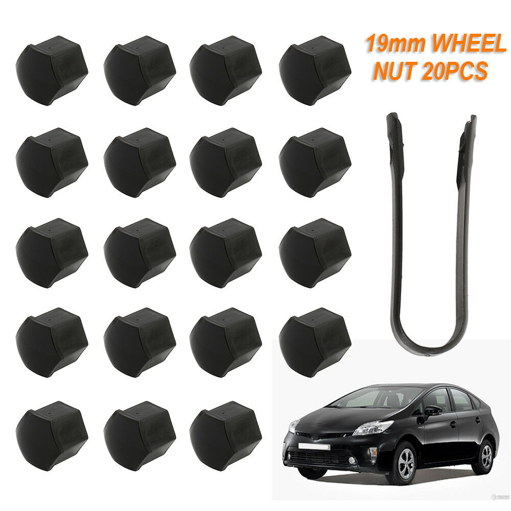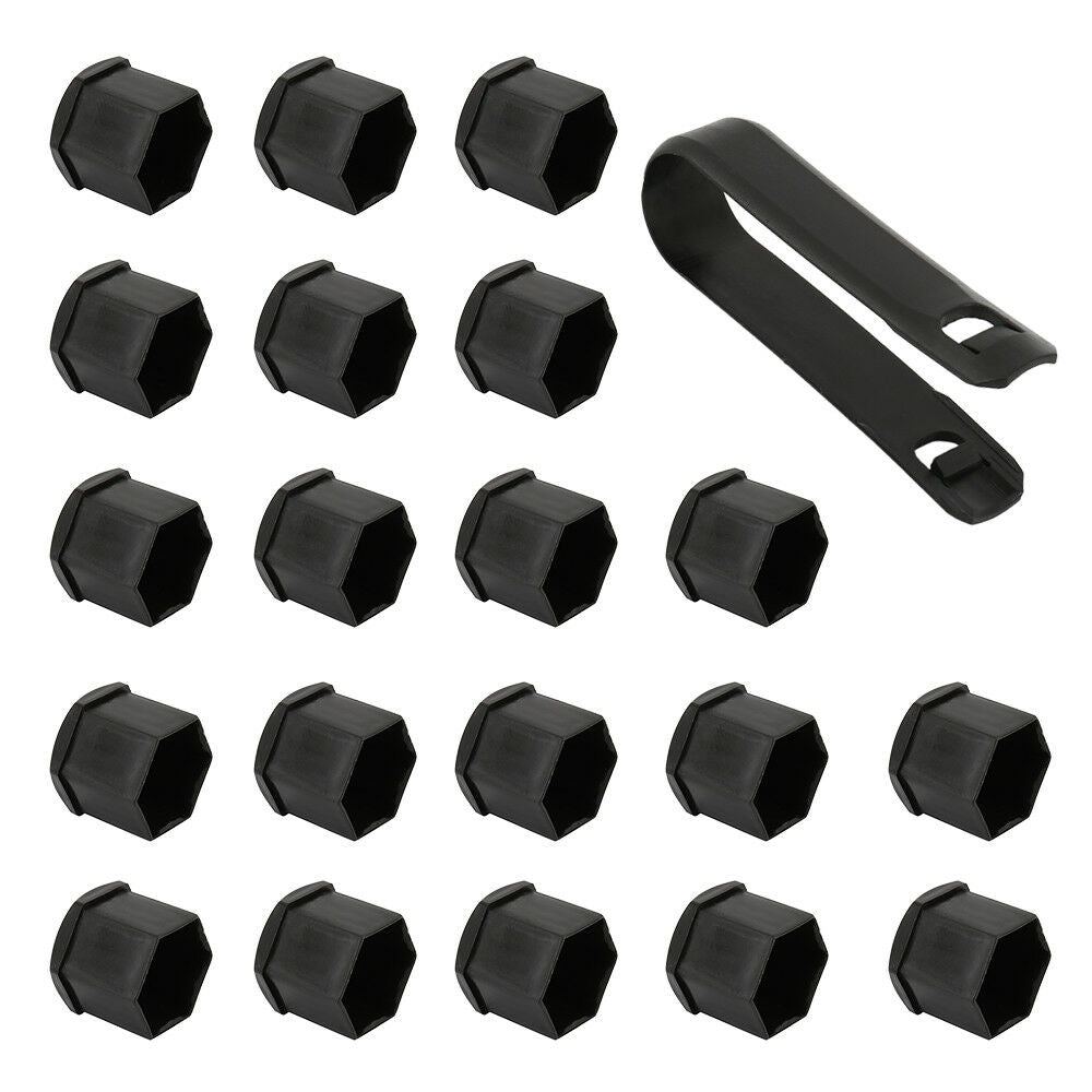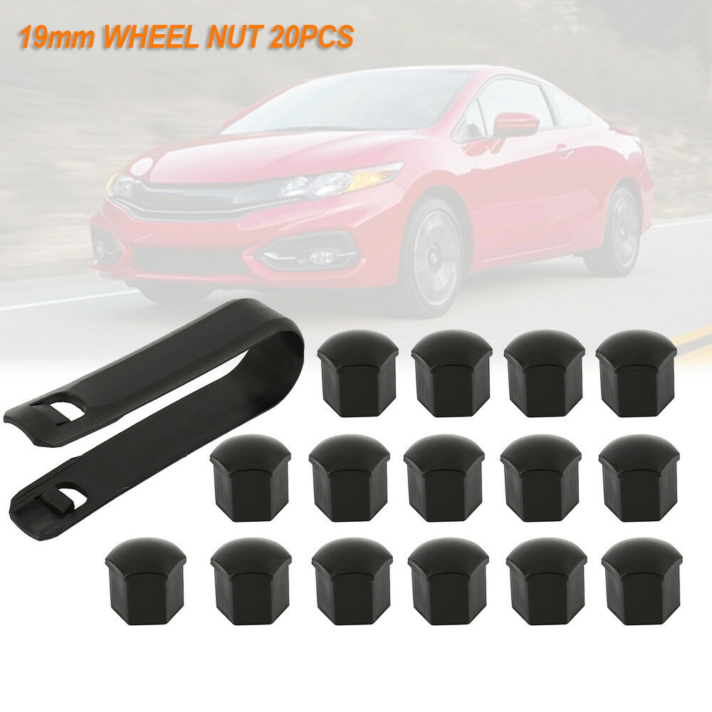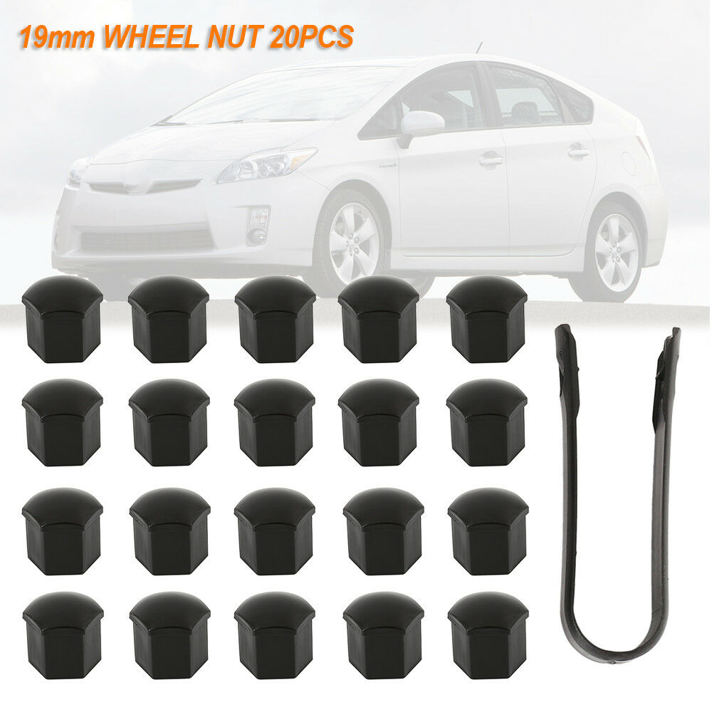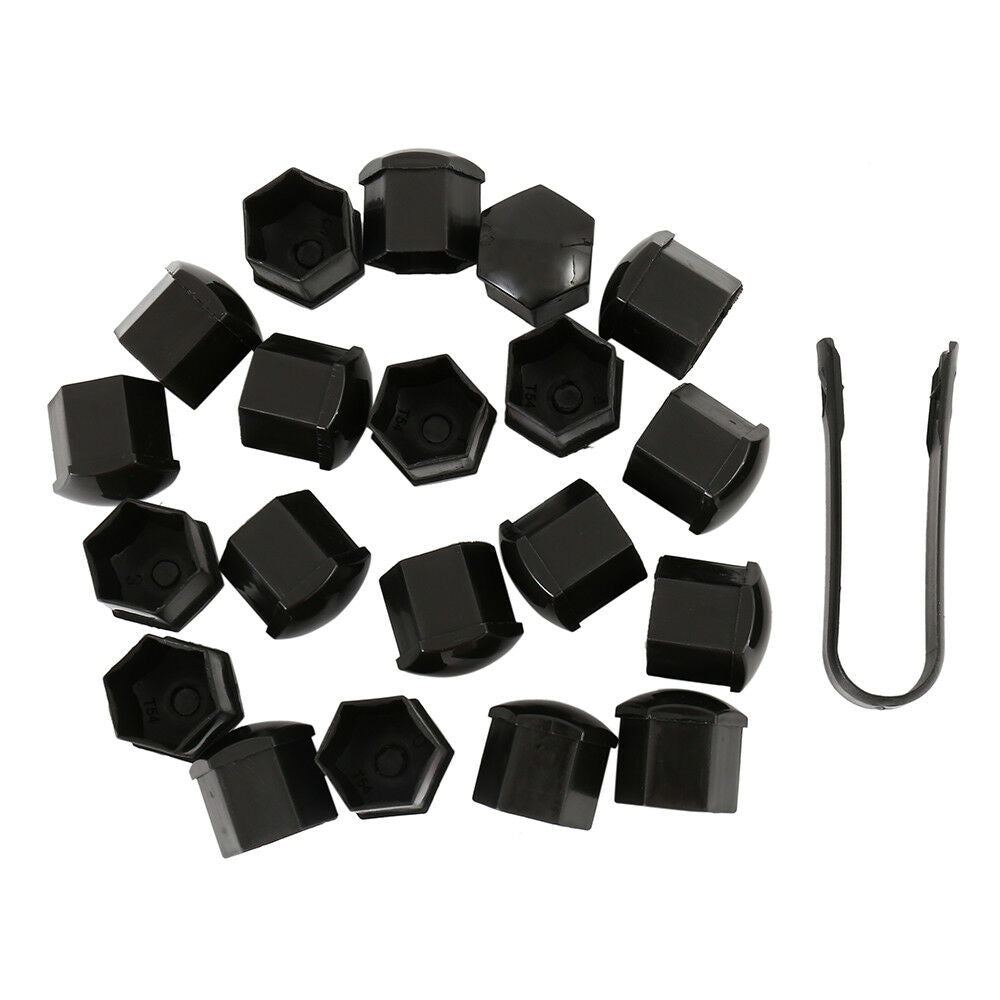 Set of 20 19mm BLACK WHEEL NUT BOLT COVERS CAPS FOR ANY CAR LOCKING