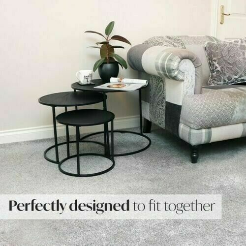 Set of 3 Black Metal Round Wood Top Nested Tables Coffee Side End NestingTable