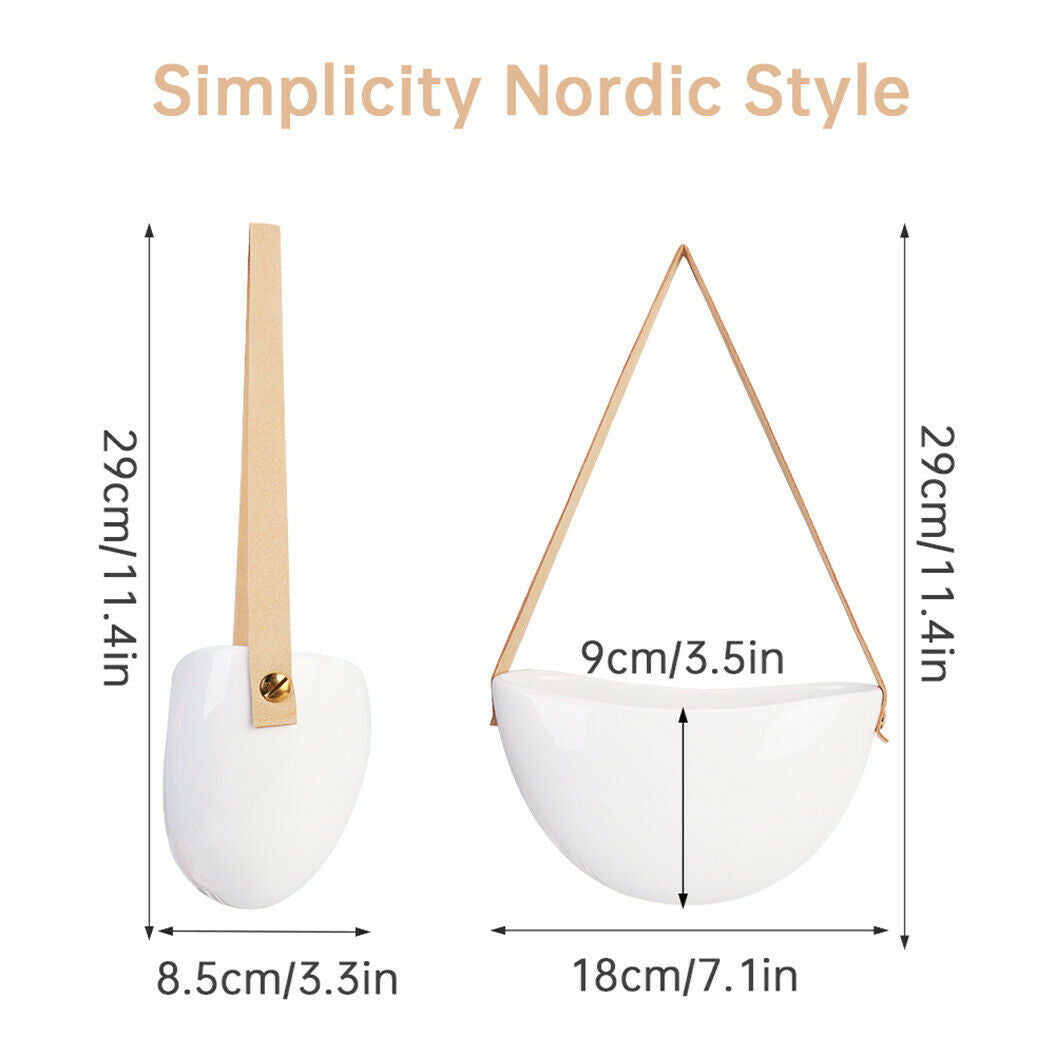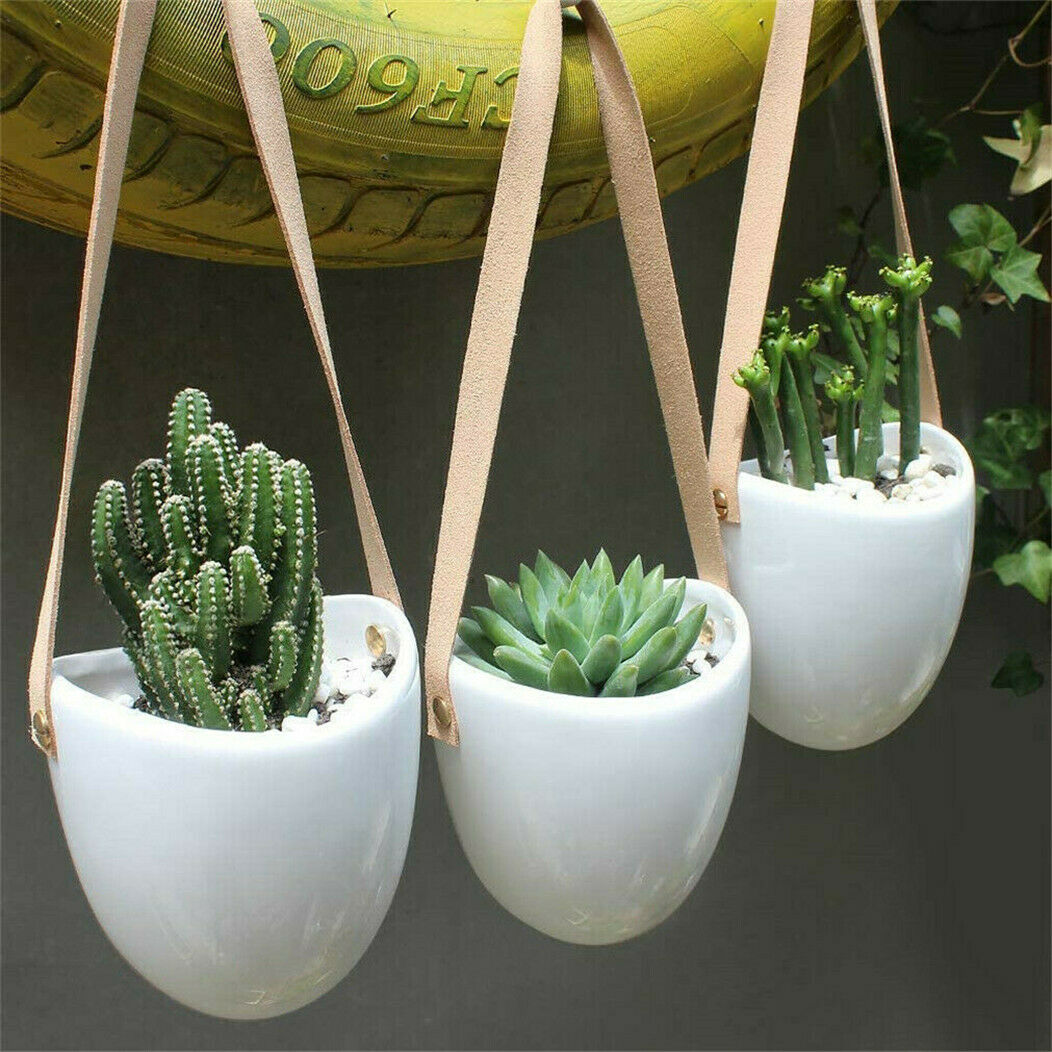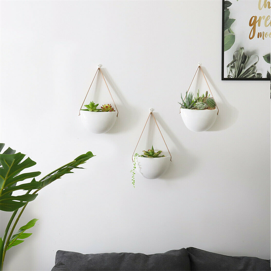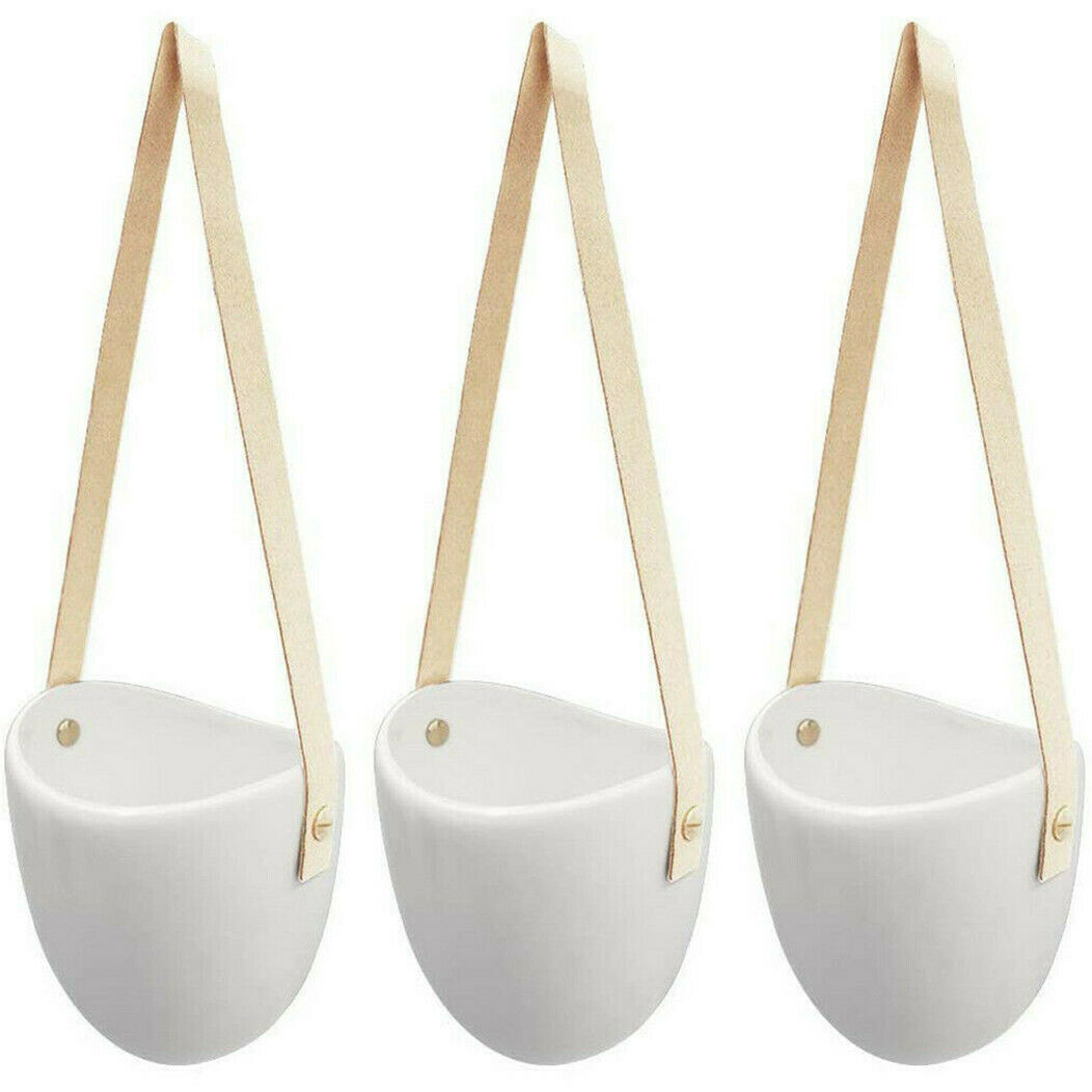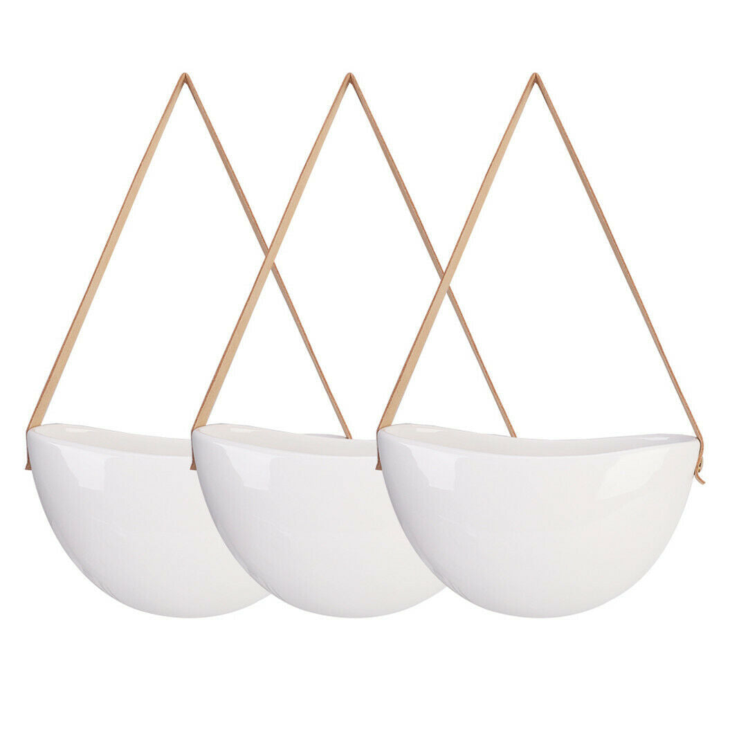 Set of 3 Ceramic Hanging Planter Vase Garden House Hanging Pots &Rope Wall Decor
