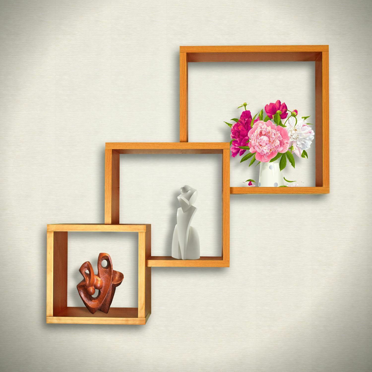 Set of 3 Cube Shaped Floating Wall Shelves Storage Display Shelf Decor Natural