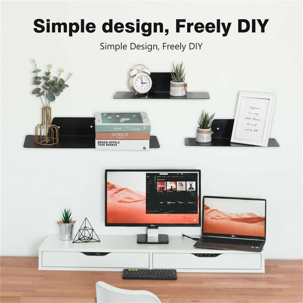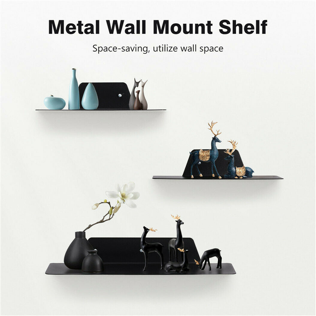 Set of 3 Industrial Metal Floating Wall Shelves Rustic Farmhouse Designed Shelf