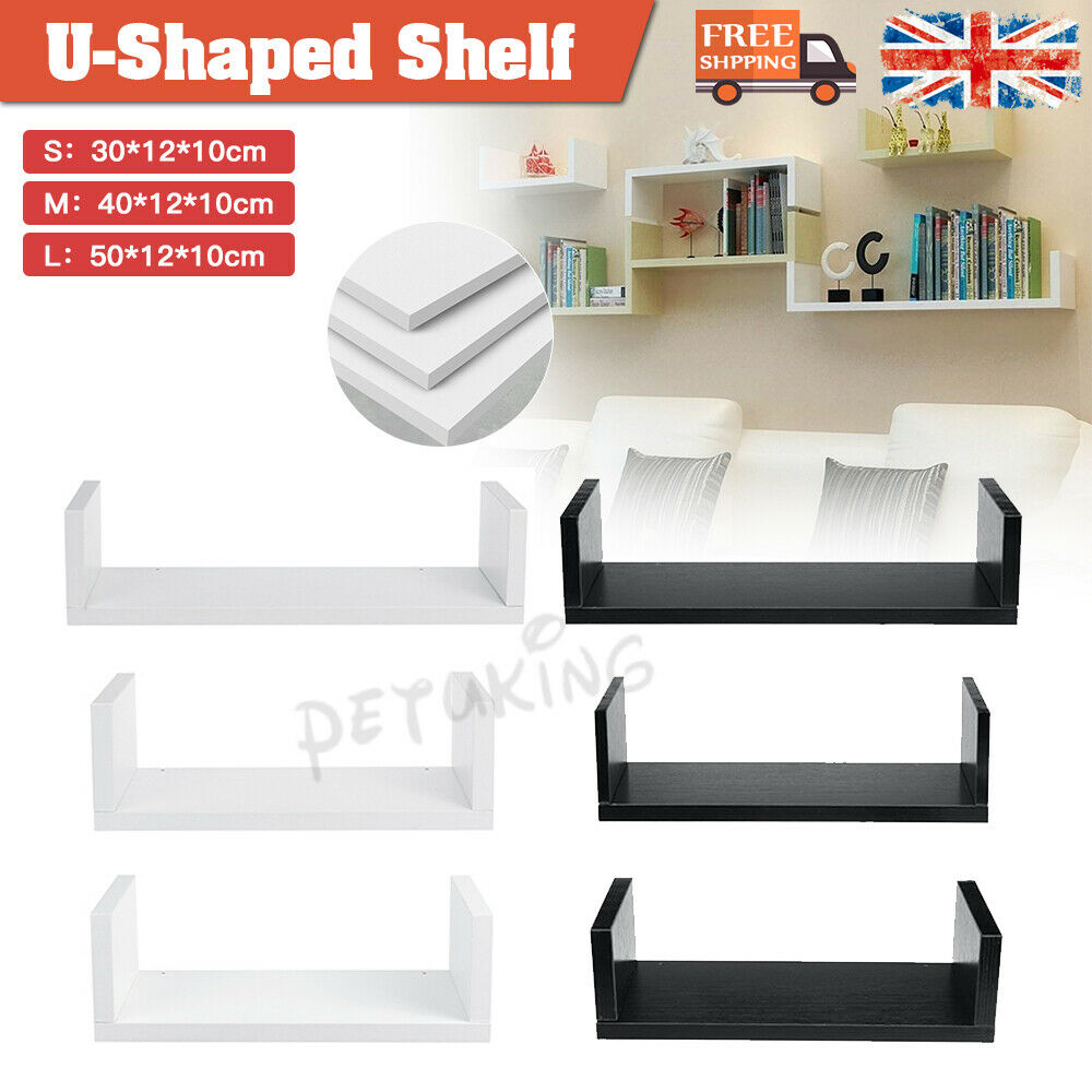 Set of 3 Large U Shape Floating Wall Shelves Storage Display Shelf Home Decor