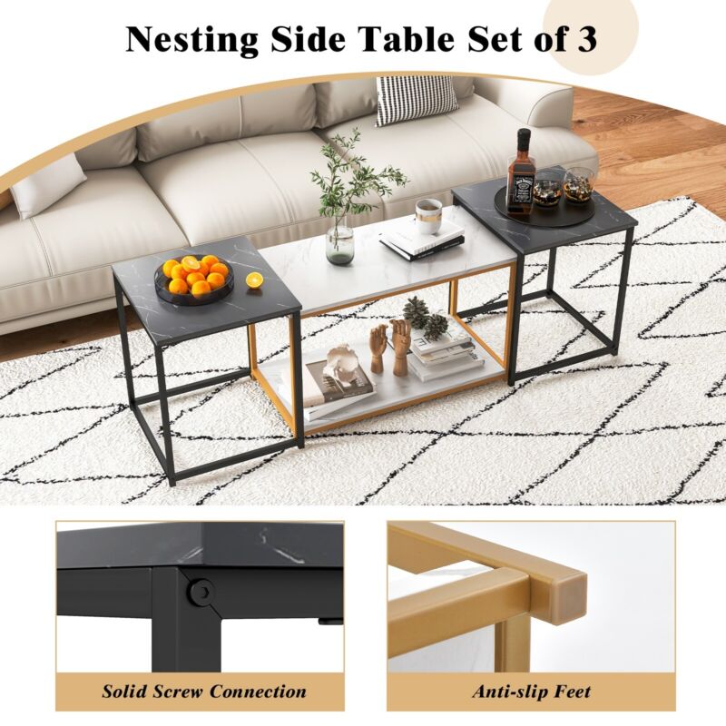 Set of 3 Modern Coffee Nesting Table Set Faux Marble Top Side Table End Table