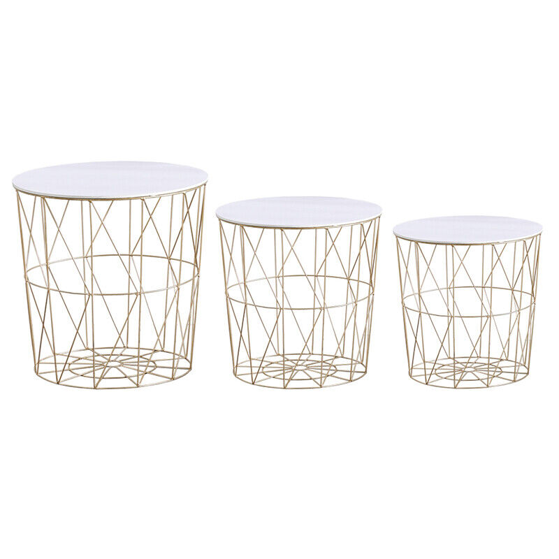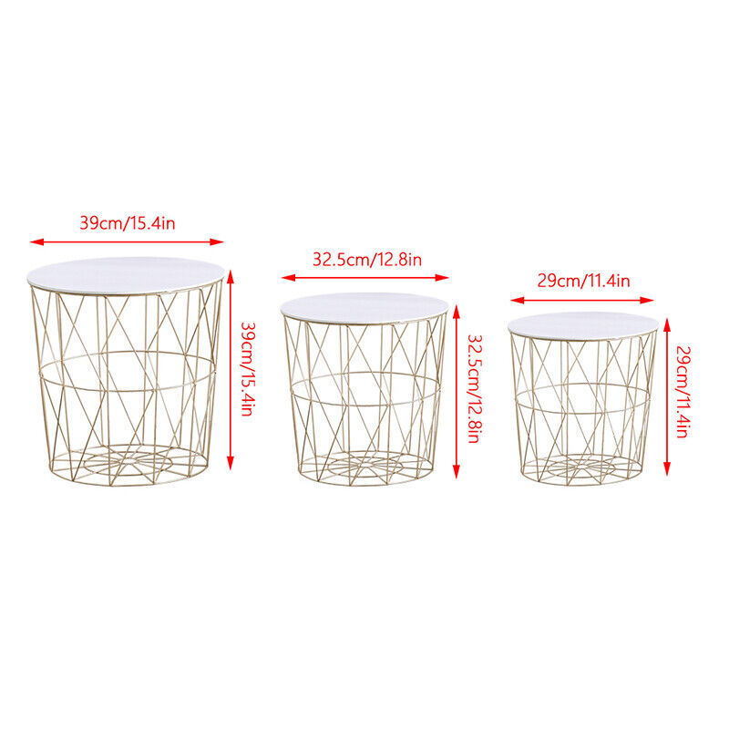 Set of 3 Round Nesting Tables with Wooden Top End Table Coffee Side Tables White