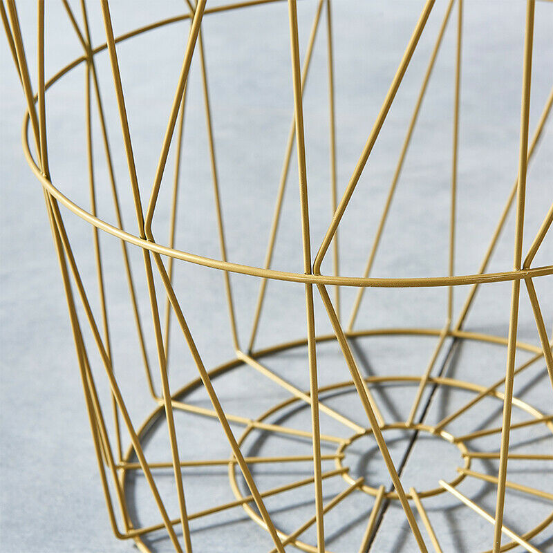 Set of 3 Storage Basket Nested Tables Side Table Metal Wire White Marble Effect
