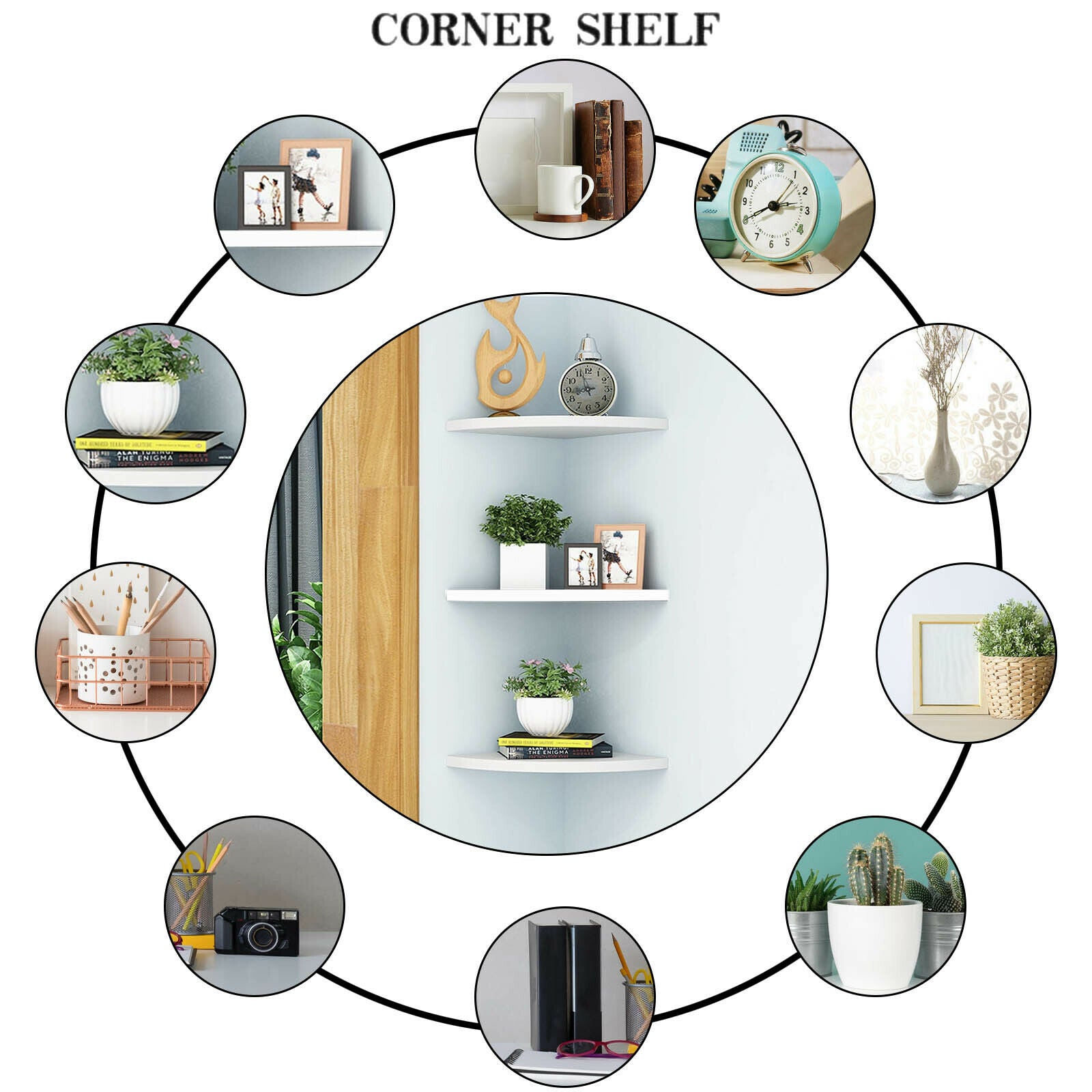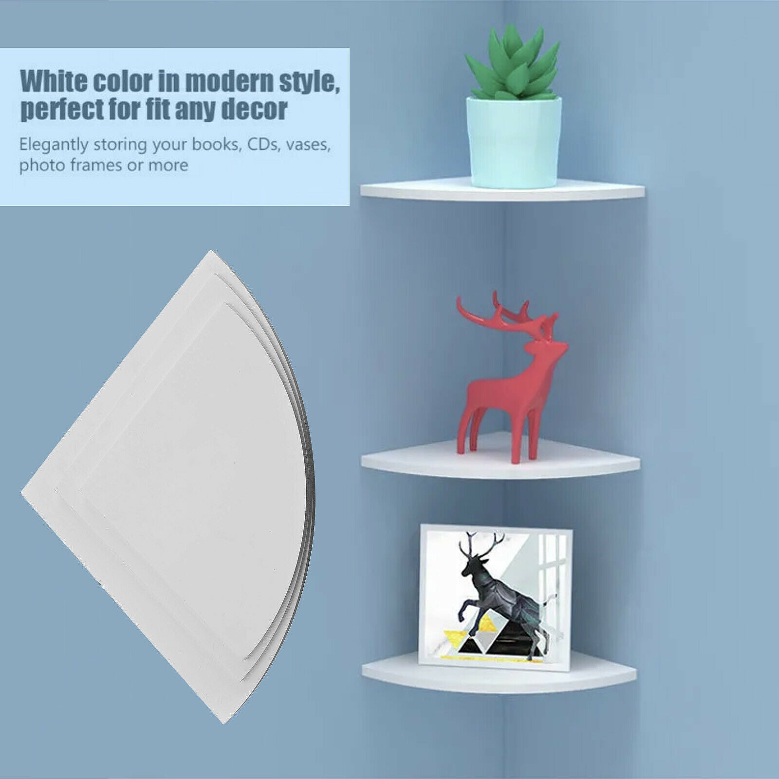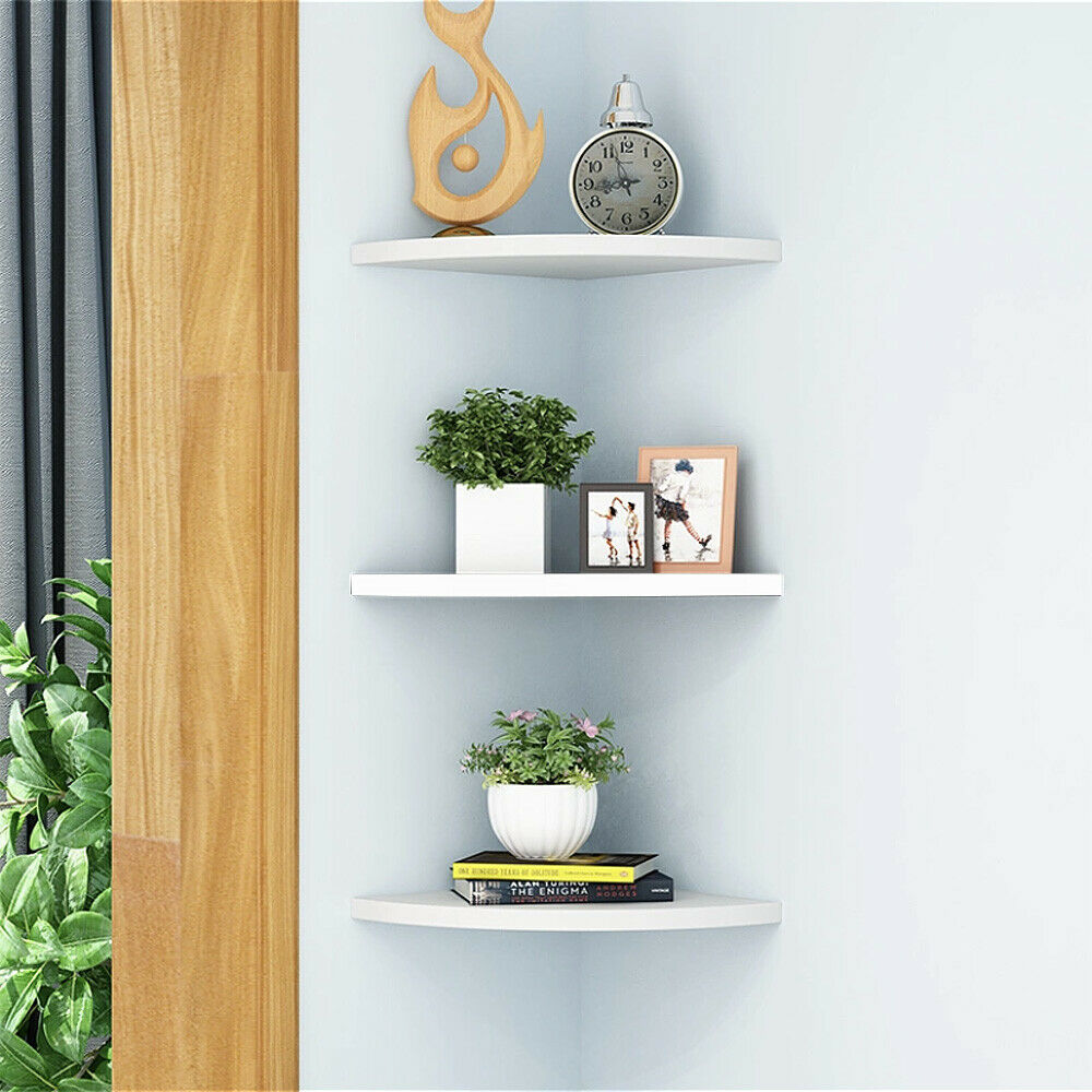 Set of 3 White Floating Wall Corner Shelves Shelf Unit Storage Display Bookcase