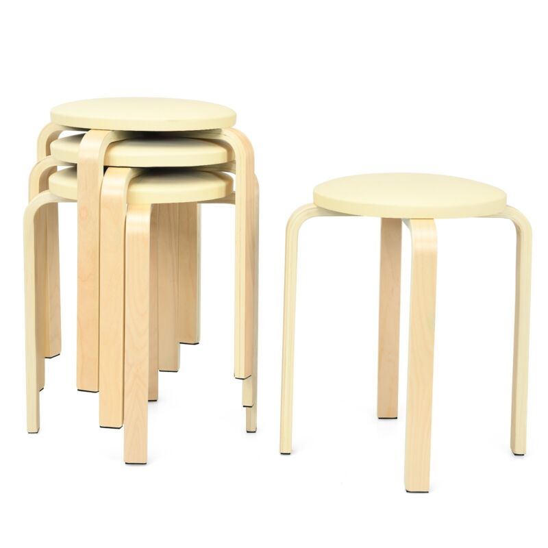 Set of 4 Bentwood Stools Backless Counter Stools Padded Stackable Dining Stools