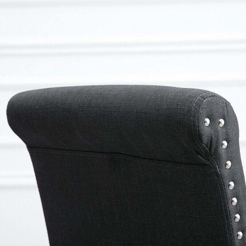 Set of 4 Dark Gray Fabric Dining Chairs Padded Seat with Rivet Kitchen Chairs