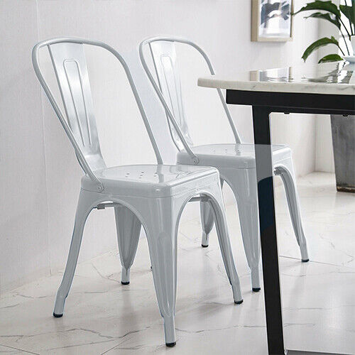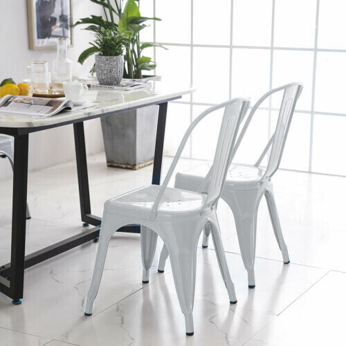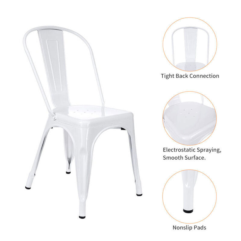 Set of 4 Dining Chairs Metal Kitchen Chairs Bistro Chair Stackable Tolix White