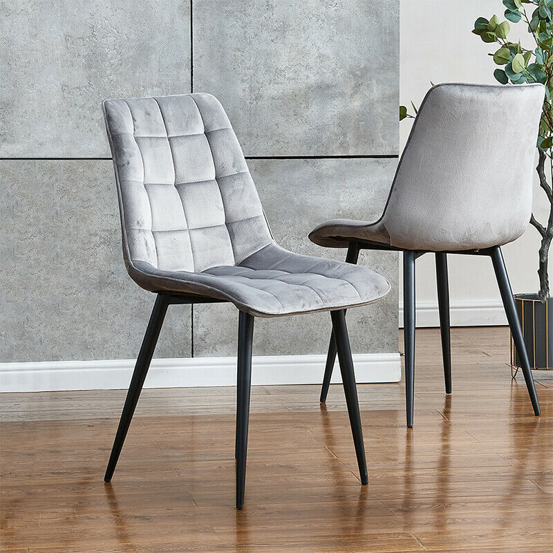 Set of 4 Grey Velvet Dining Chairs Kitchen Dinning Room Metal Leg Padded Modern