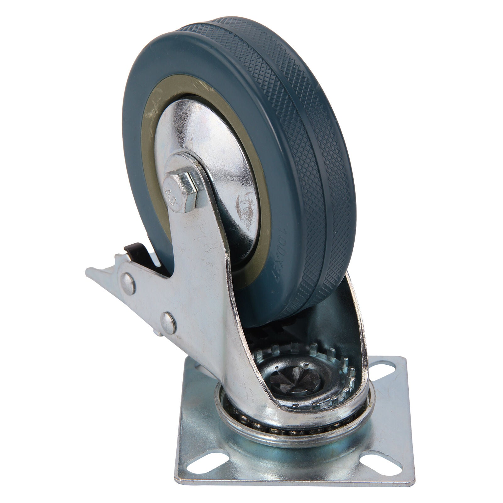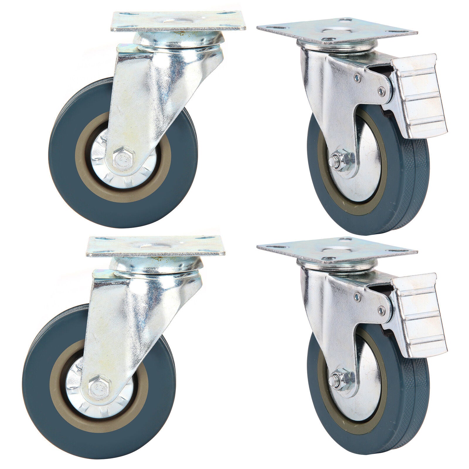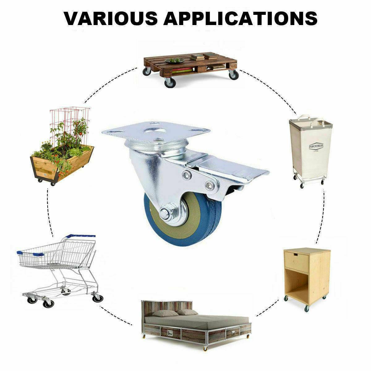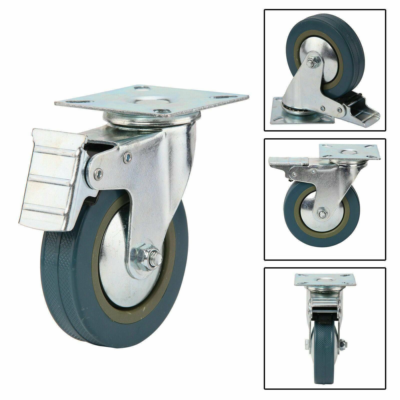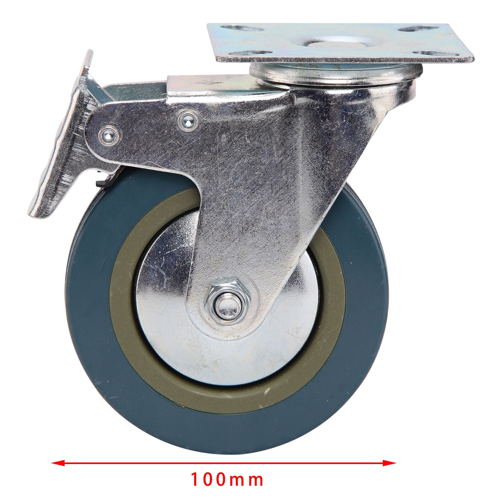 Set of 4 Heavy Duty 100mm Trollry Rubber Swivel Castor Wheel Caster Brake 600KG