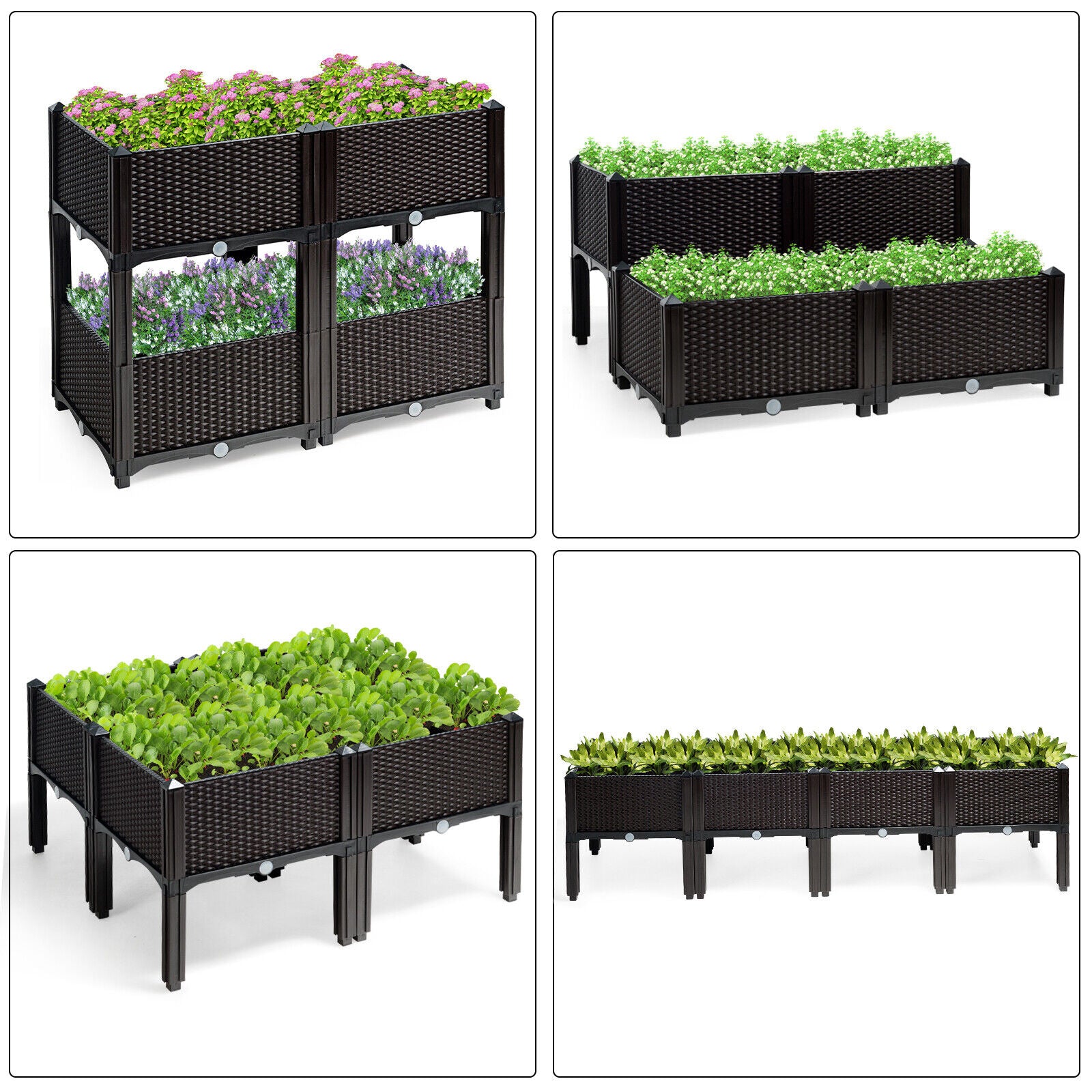 Set of 4 Raised Garden Bed Kits Elevated Flower Vegetable Herb Grow Planter Box