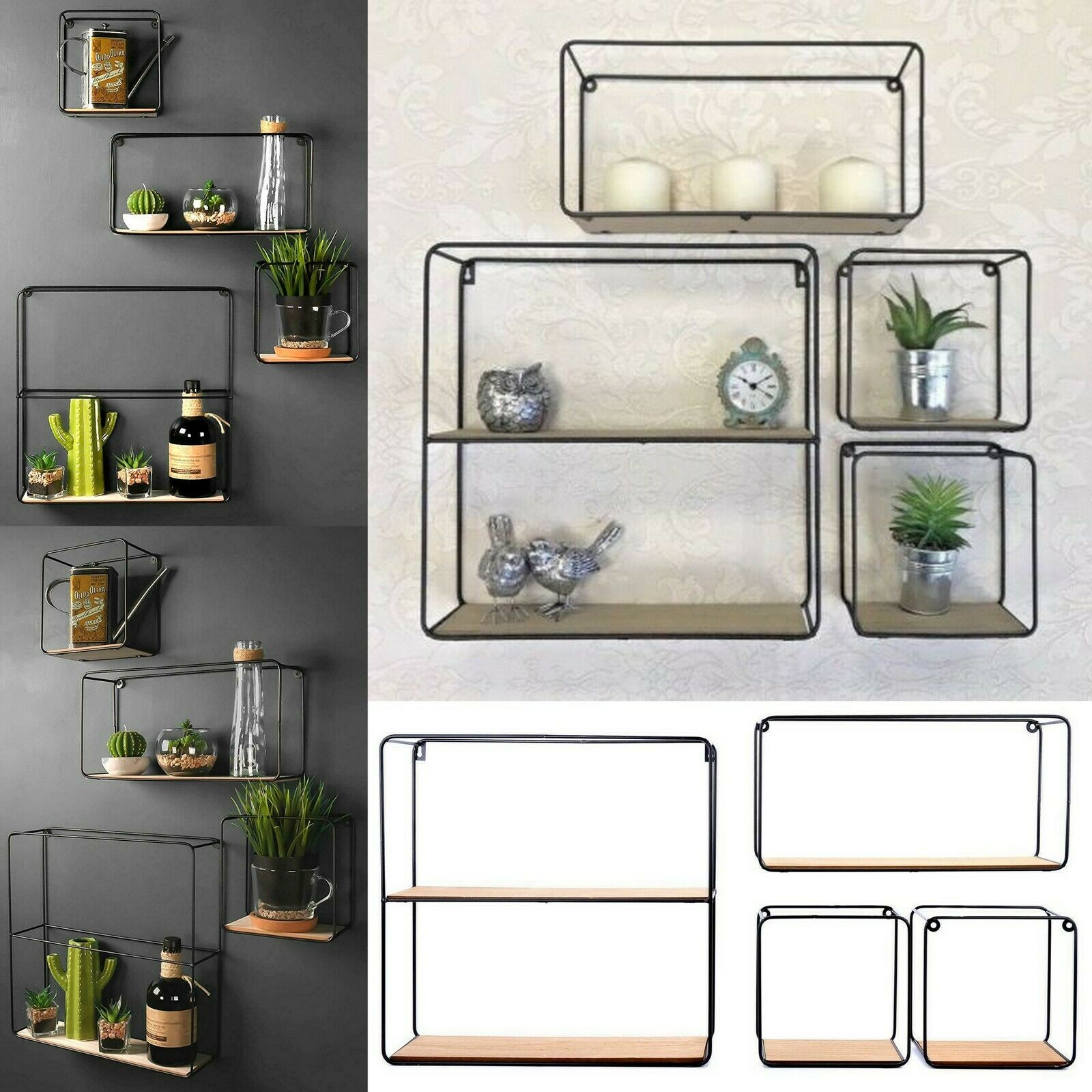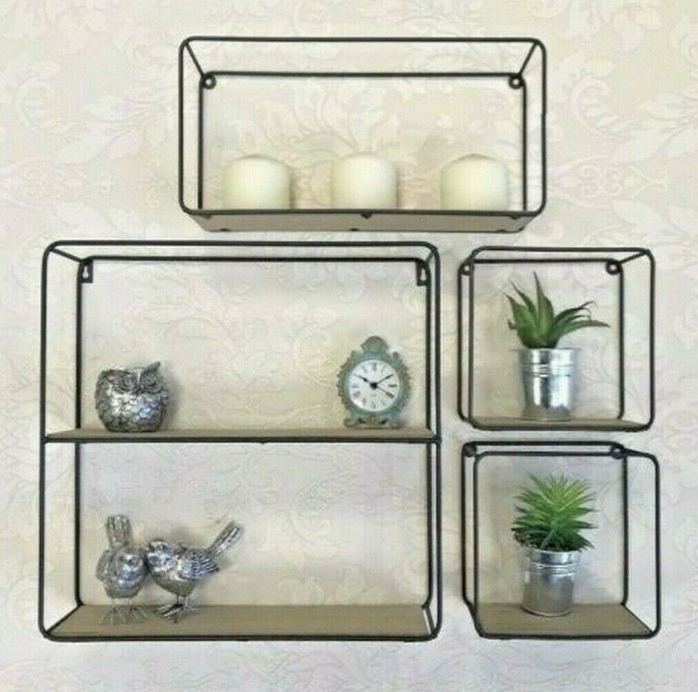 Set of 4 Retro Metal Wall Shelf Industrial Style Shelves Storage Display Unit UK