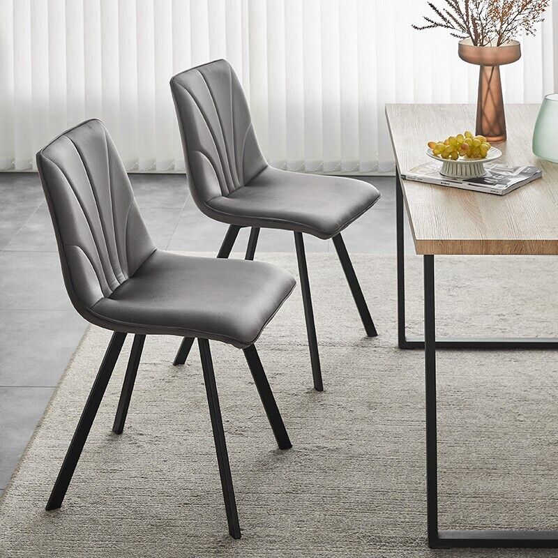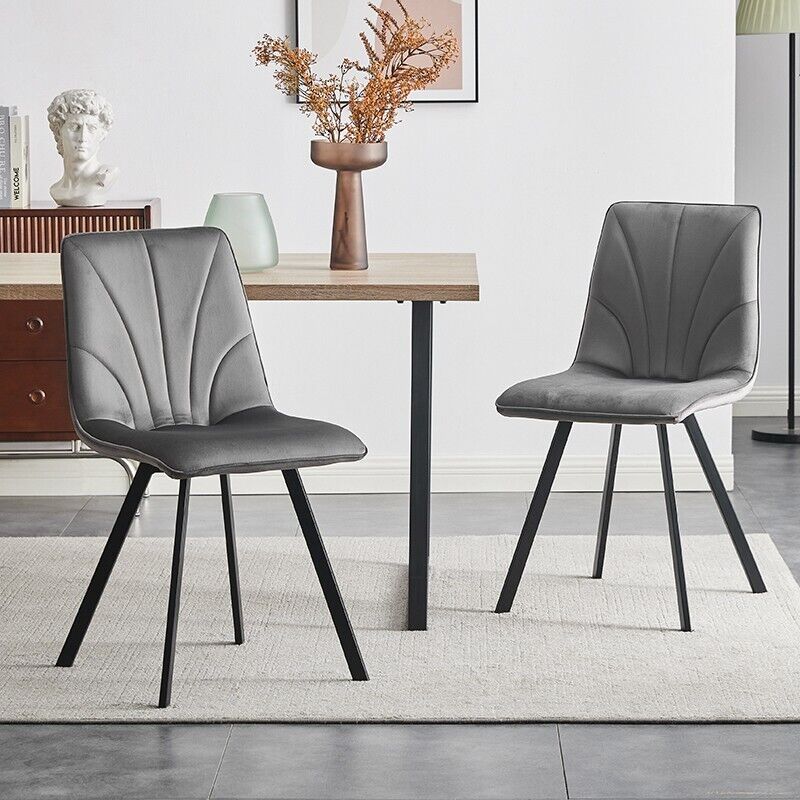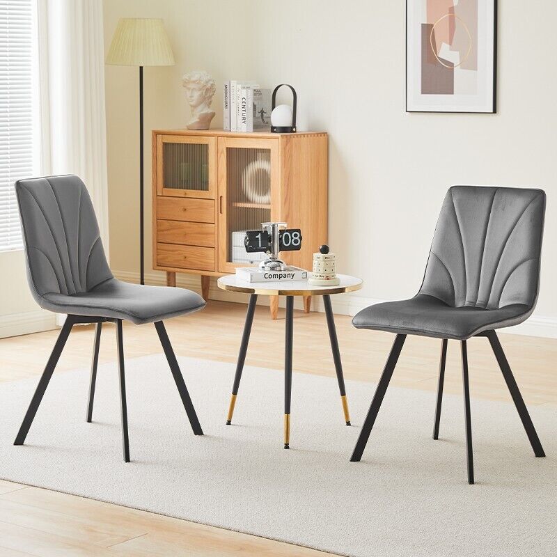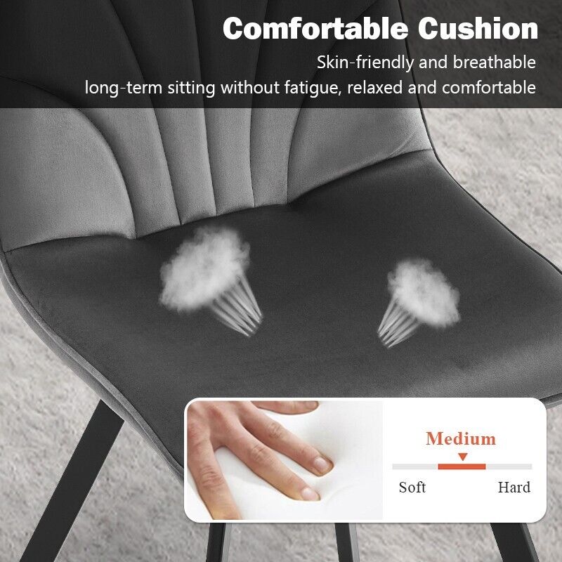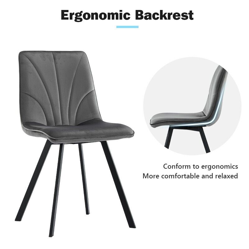Set of 4 Soft Velvet Fabric Designer Dining Chairs With Metal Legs Kitchen Chair