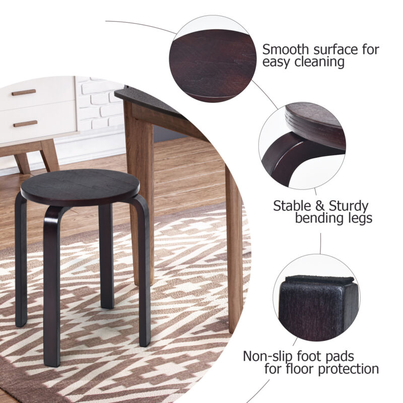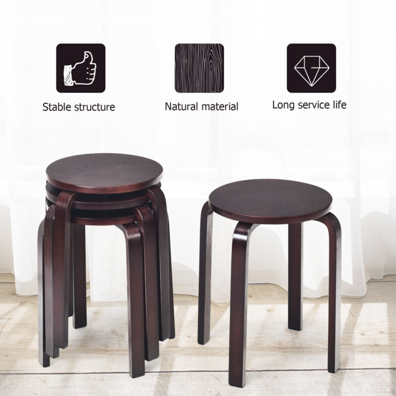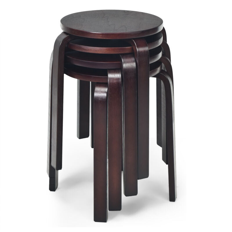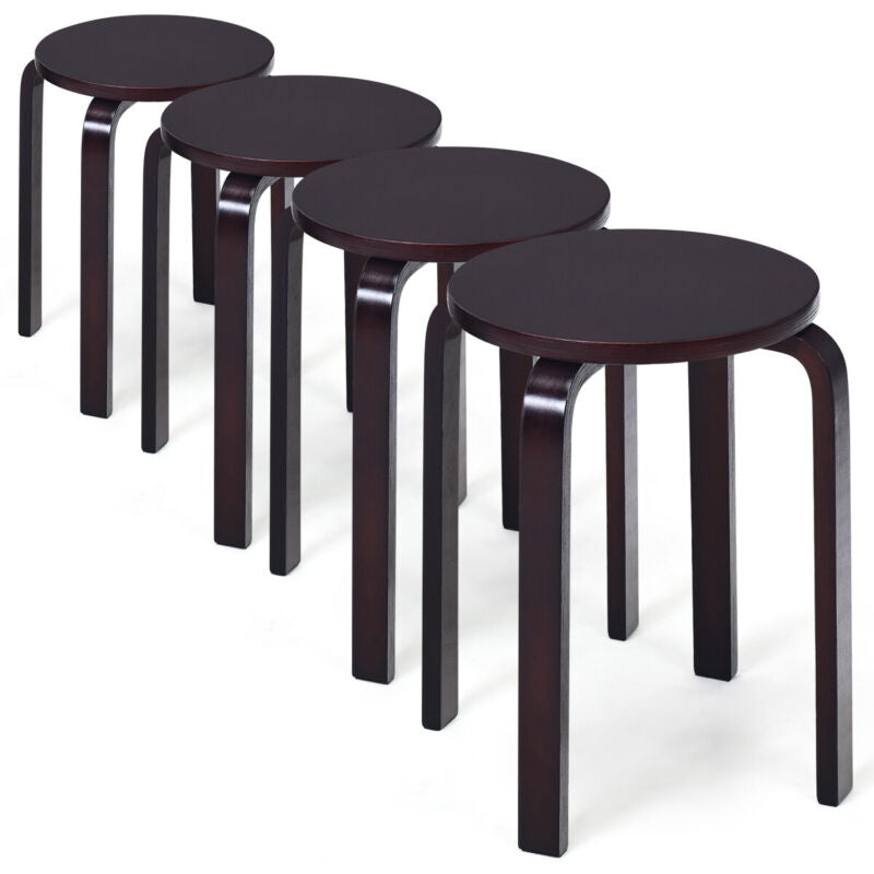 Set of 4 Stackable Dining Stools Bentwood Round Chairs Kitchen Breakfast Seating