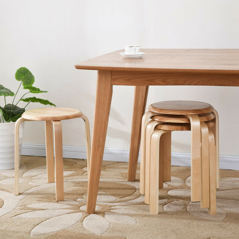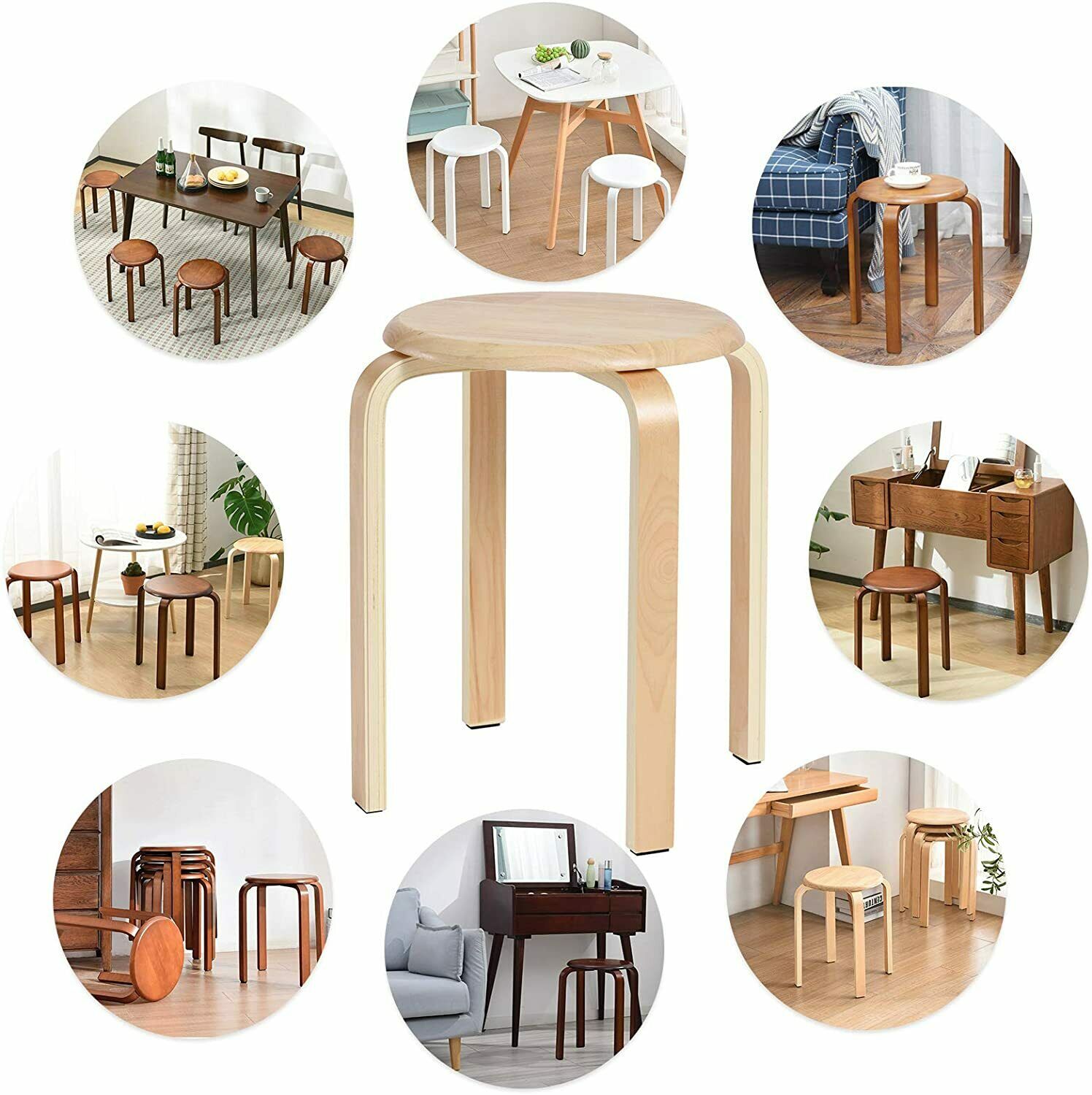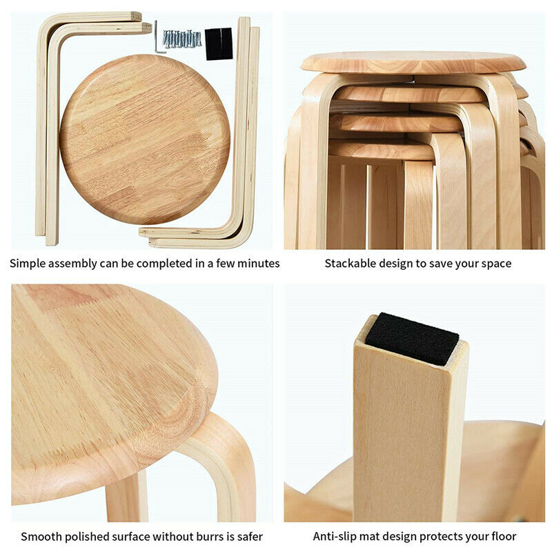 Set of 4 Wooden Stools Stacking Dining Stools Breakfast Seating Stackable Seats