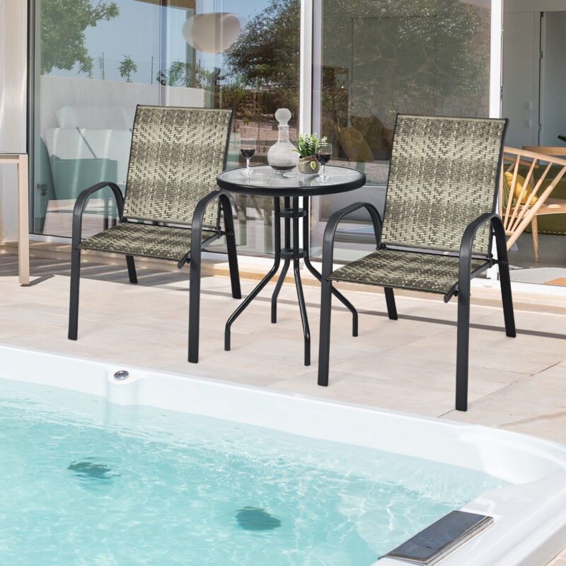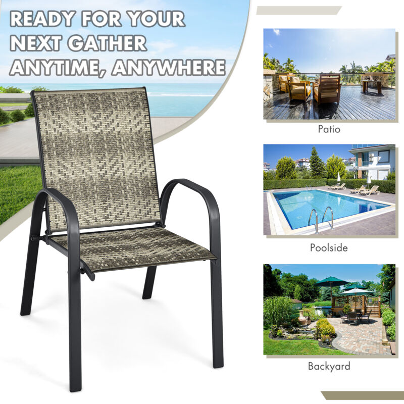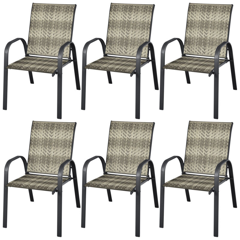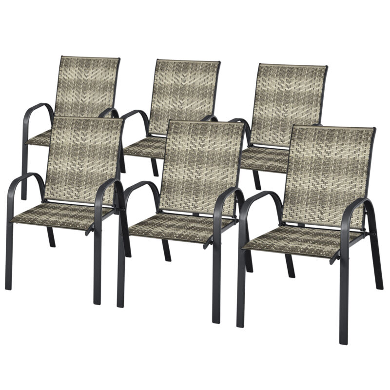 Set of 6 PE Wicker Stackable Chairs Garden Patio Armchairs Bistro Chair Seats