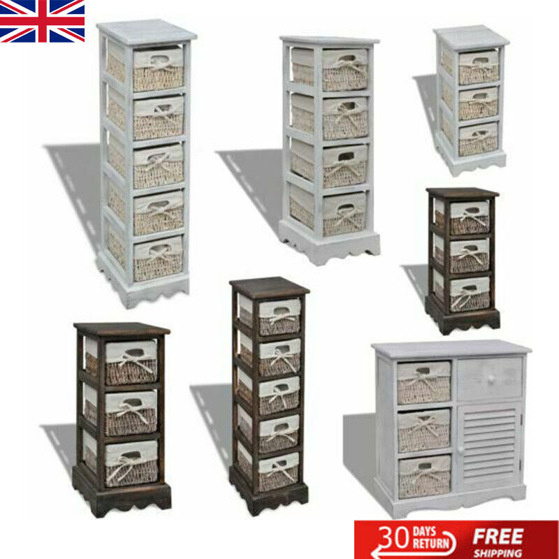 Shabby Chic Wicker Drawers Basket Storage Sideboard Wooden Bedside Cabinet Table