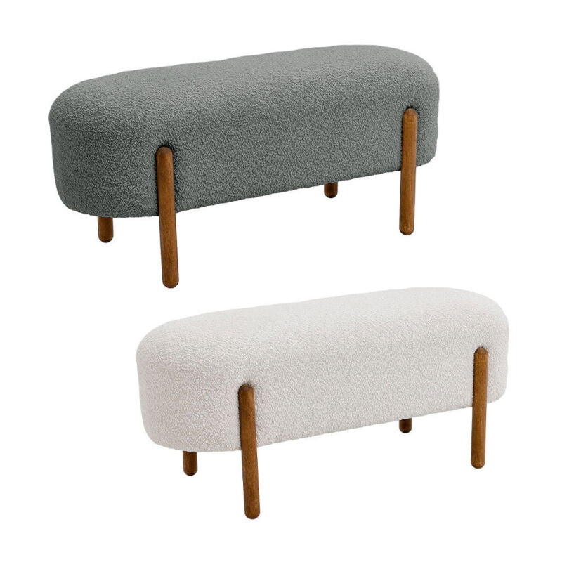 Sherpa End Of Bed Bench Stool Chair Modern Boucle Upholstered Bedroom Footstool