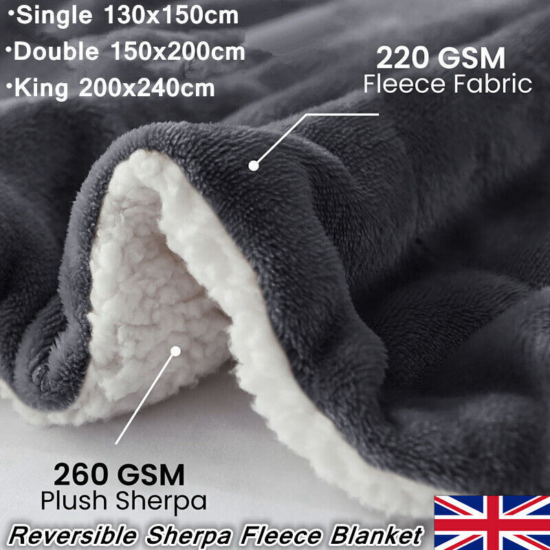 Sherpa Fleece Blanket Soft Warm Faux Fur Large Sofa Throw Bed Double King Sizes